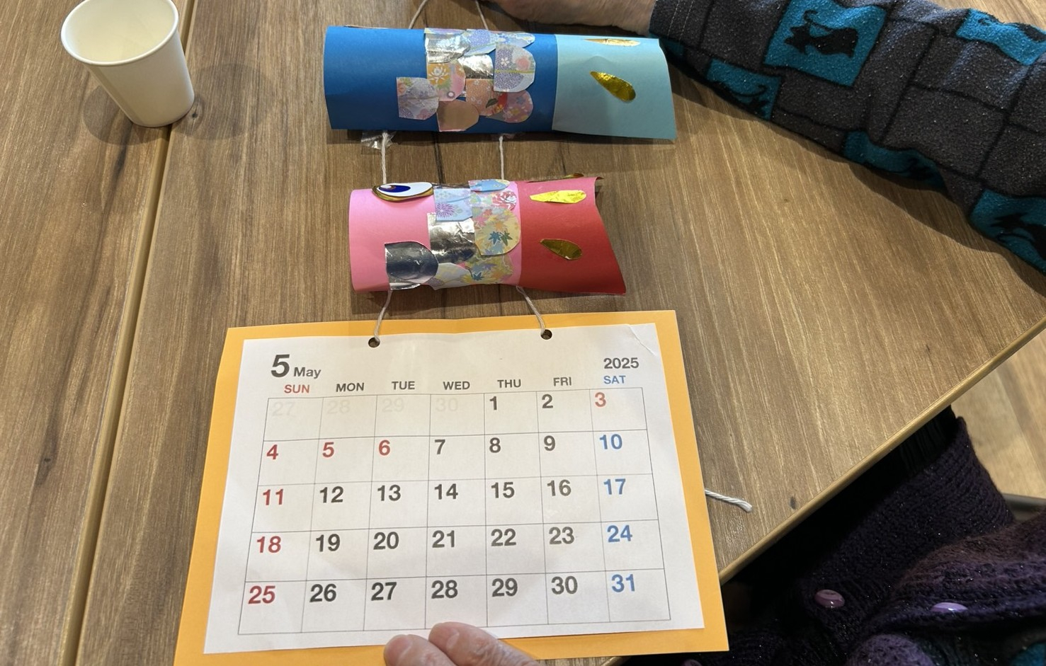 2025.04.18 活動報告 【中野デイ】5月カレンダー作り Tweet シェアする 本日は来月のカレンダー作りを行いました。 カレンダーの上に鯉のぼりが上がっていて素敵! I様はご満悦な笑顔でピース! 奉優デイサービス中野 T 前の記事 2025.04.25 活動報告 【中野デイ】サックス演奏会! 次の記事 2025.04.17 活動報告 【中野デイ】トルト歩行 一覧へ戻る