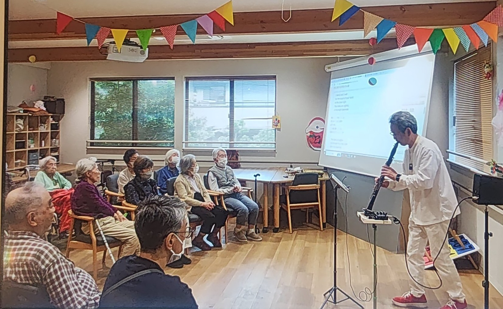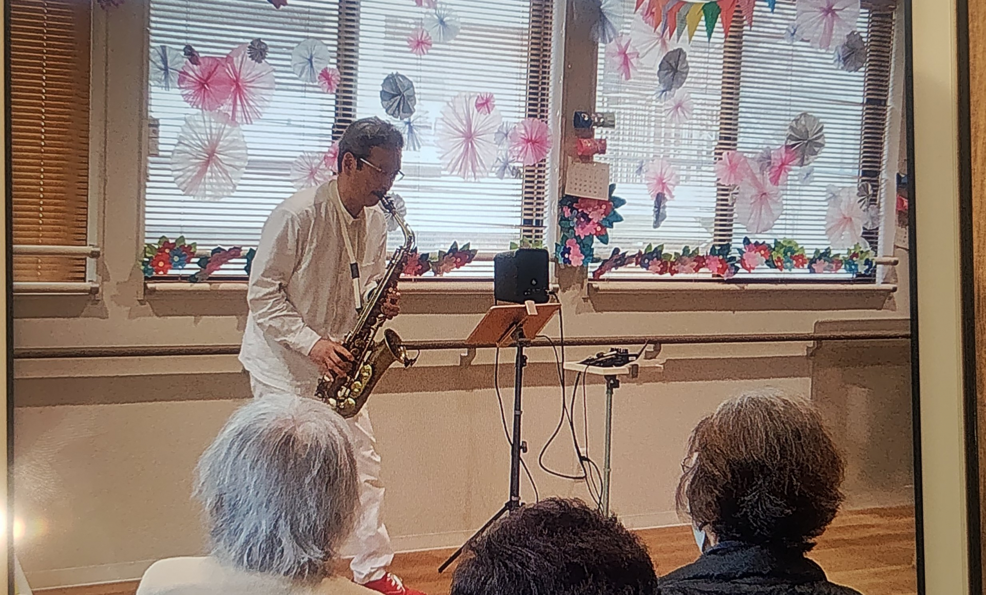 おなじみのサックス演奏会で最初に皆様自分の聞きたい曲のリクエストを行います。最近は職員もよくリクエストしています(笑)
