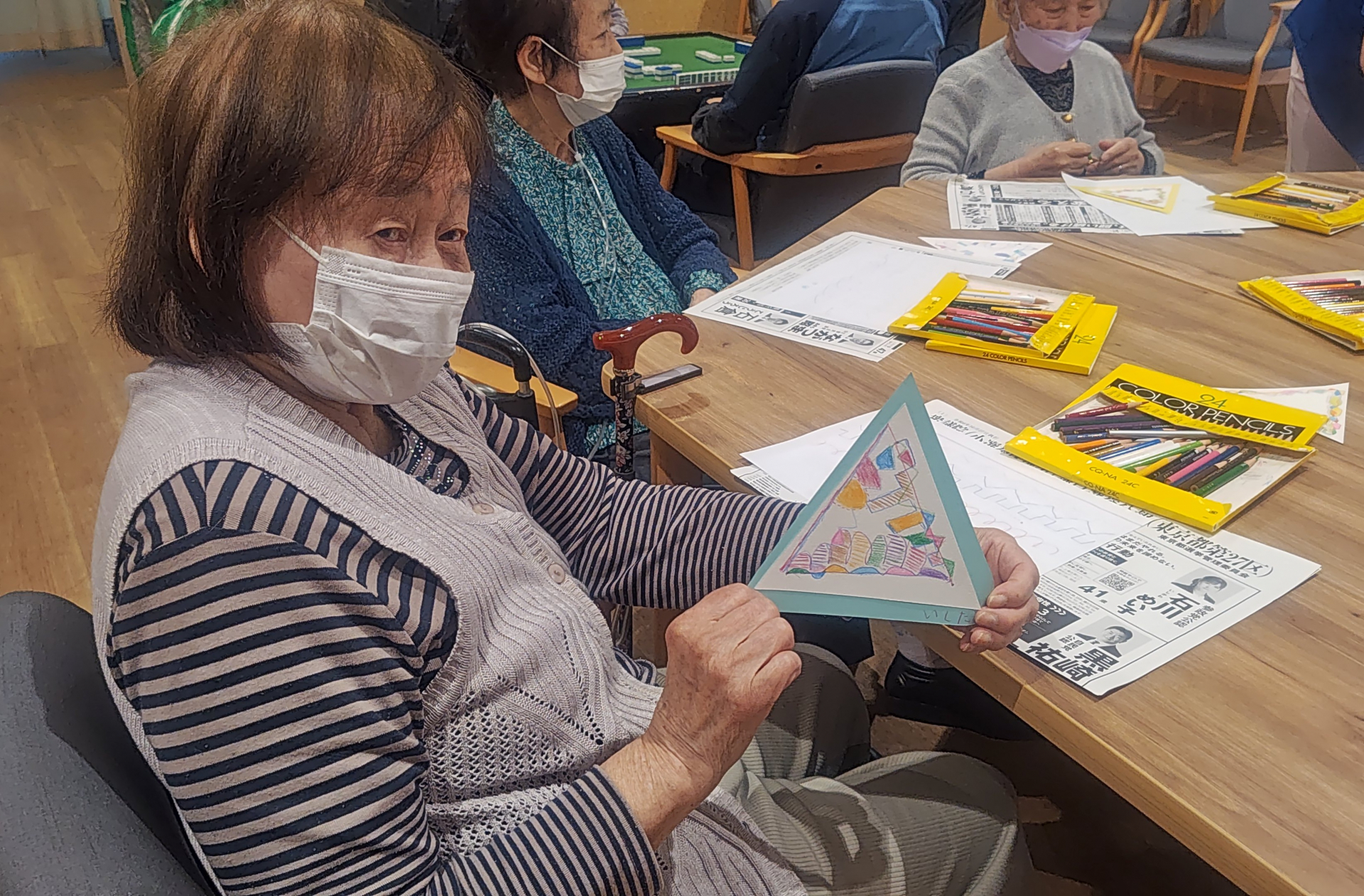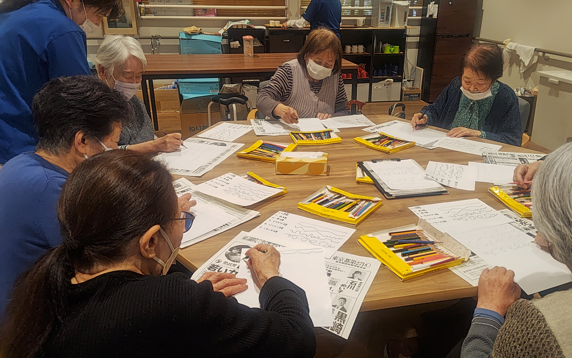 本日も臨床心理士の先生をお招きして臨床美術が実施されました。専門家の指導を受ける事でより効果的な体験が出来るそうです。