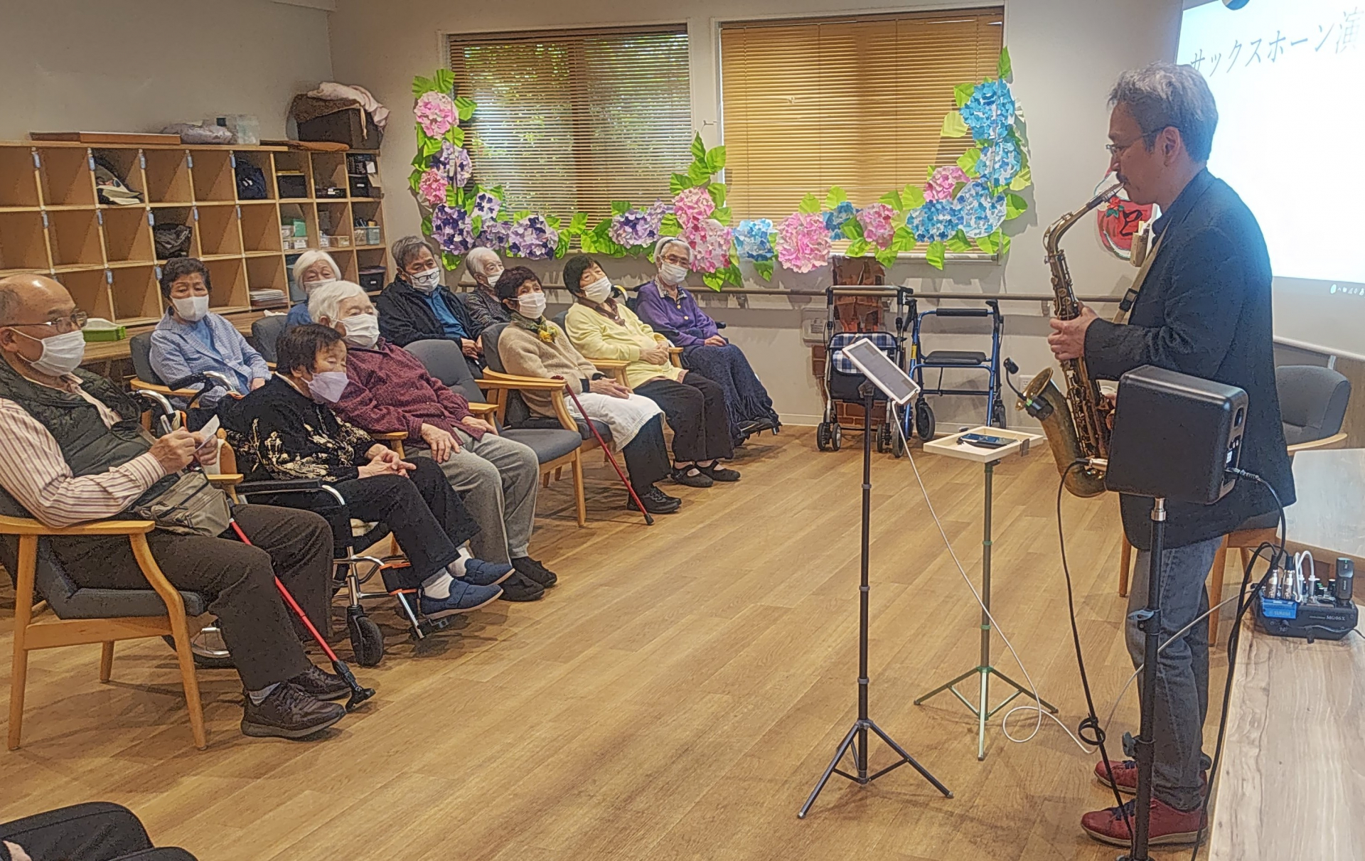 人気の音楽レクリエーション、5月のサックス演奏会♪は27日(火)に開催されました。
