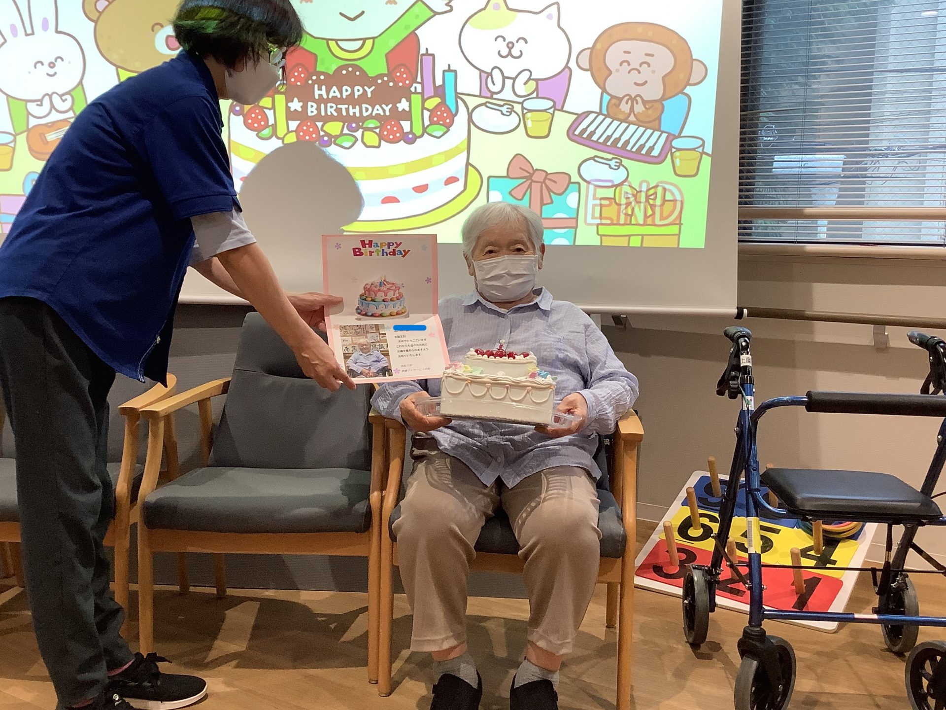 ハッピーバースデーソングをみんなで歌い、職員特製の写真付き、バースデーカードをプレゼントしています♪