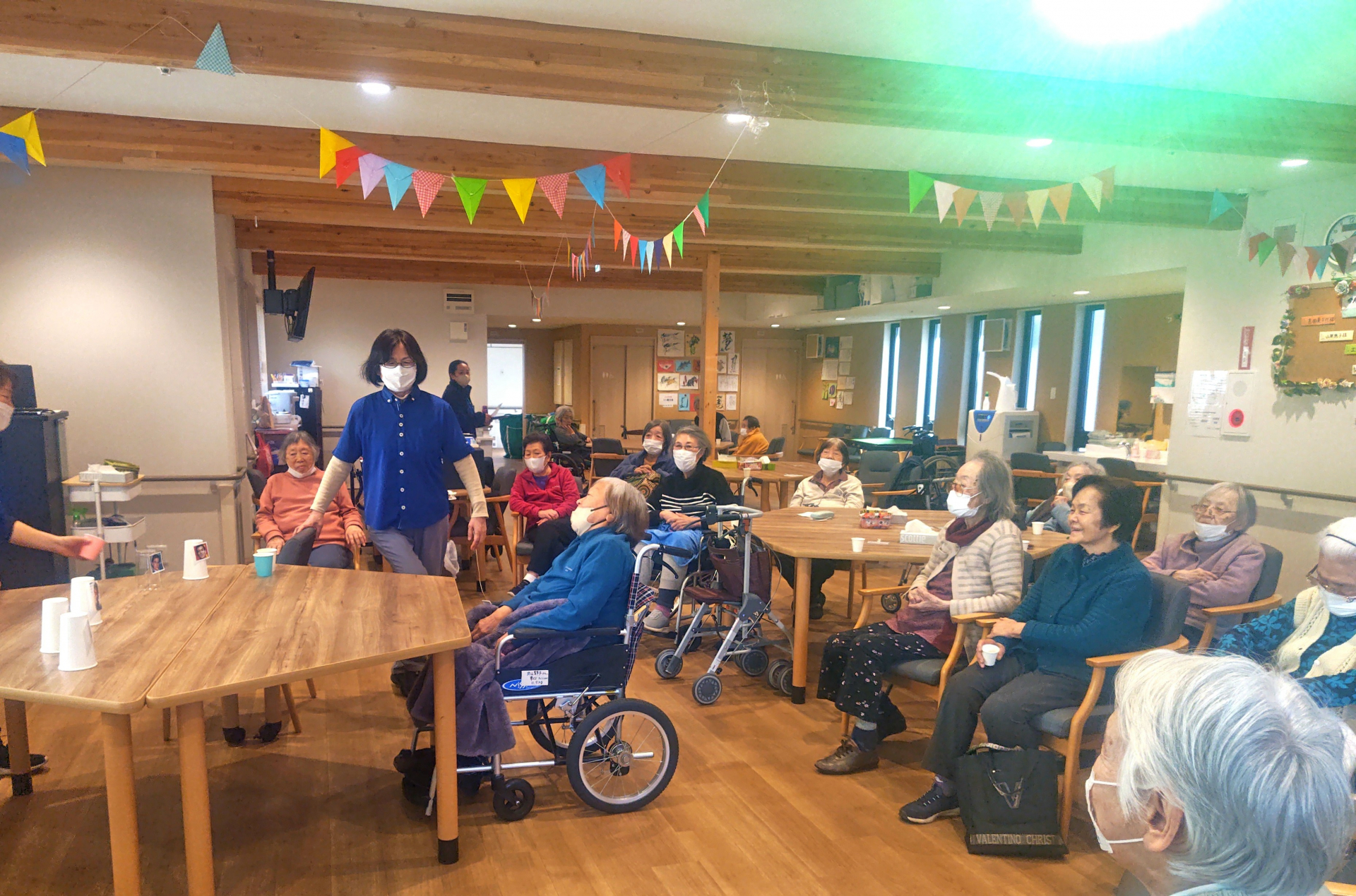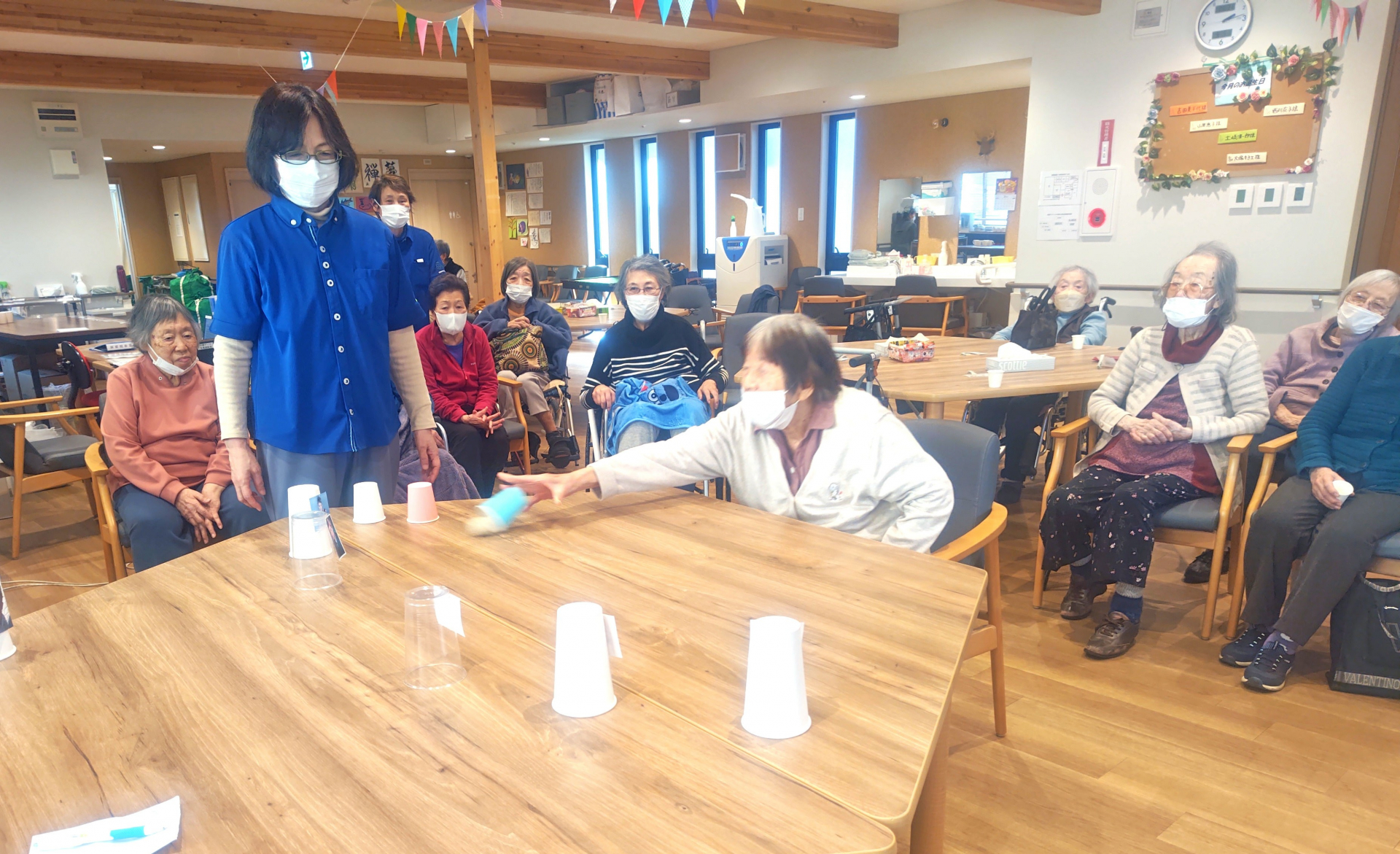 本日の午後レクはゴルフボールを使ってのカーリング大会が開催されました。