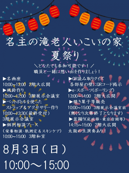 2025.08.06 最高の思い出になりました 活動報告 2025.08.03 押し花マグネット講座開催しました。 活動報告 2025.08.03 シニアバレエ教室開催致しました 活動報告 2025.08.03 みなさまの健康法⑥ 高齢者福祉センター 2025.08.03 いこいこ体操開催いたしました 活動報告 2025.08.02 いこいこ体操開催いたしました 活動報告 2025.08.02 【8月】みんなでe-スポーツ開催致します 活動報告 2025.08.02 花壇の整備始めました⑮ 活動報告 2025.08.02 【8月】みんなでボッチャ開催致します 活動報告 2025.08.02 みんなでボッチャ開催致しました 活動報告 2025.08.02 盆踊り練習会開催致しました 活動報告 2025.08.02 夏祭り装飾準備を致しました 活動報告 2025.07.31 【当選発表】「8月開催歌声サロン」抽選結果のお知らせ お知らせ 2025.07.29 夏祭り開催致します お知らせ 2025.07.29 みんなでe-スポーツ開催致しました 活動報告 1 … 13 14 15 16 17 … 58