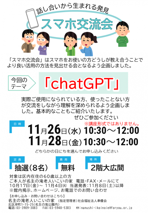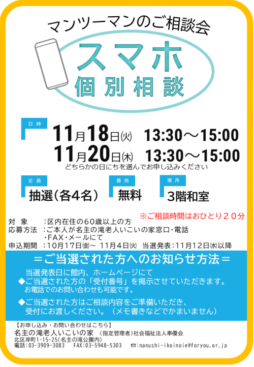 2025.10.26 花壇の整備始めました㉑ 活動報告 2025.10.25 いこいこ通信11月号を発行しました お知らせ 2025.10.22 脳いきいきタブレット講座開催致しました 活動報告 2025.10.22 【当選発表】「知っておいて損はない お金の話」抽選結果のお知らせ お知らせ 2025.10.21 きらりあ健康講座開催致しました 活動報告 2025.10.19 「ソフトチェアロビ」第二回開催いたしました 活動報告 2025.10.19 【当選発表】「ちぎり絵はがき」抽選結果のお知らせ お知らせ 2025.10.18 チェアヨガ教室開催致しました 活動報告 2025.10.18 いこいこ体操開催いたしました 活動報告 2025.10.17 【当選発表】「健康フラダンス教室」抽選結果のお知らせ お知らせ 2025.10.17 【当選発表】「携帯はさみケース」抽選結果のお知らせ お知らせ 2025.10.17 11月のスマホ交流会「chatGPT」 お知らせ 2025.10.17 11月開催「スマホ個別相談」受付開始しました。 お知らせ 2025.10.16 【当選発表】「10月開催みんなで脳トレ」抽選結果のお知らせ お知らせ 2025.10.16 【当選発表】「10月かんたん英会話」抽選結果のお知らせ お知らせ 1 2 3 4 … 54