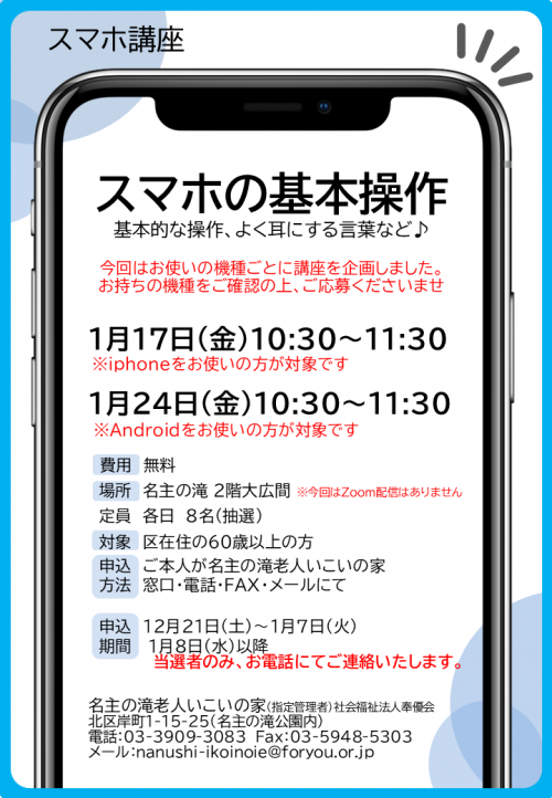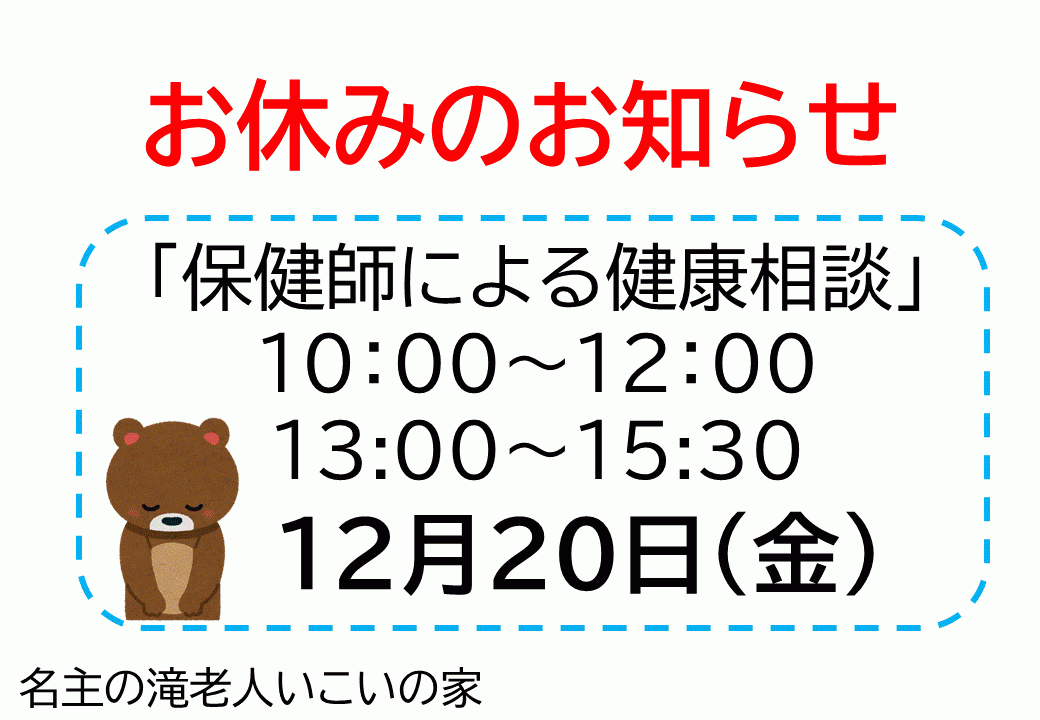 2024.12.22 今年最後のはじめてのヨガ教室 活動報告 2024.12.22 今年最後のフラダンス♪ 活動報告 2024.12.21 1月開催「スマホの基本操作」受付開始しました お知らせ 2024.12.21 お正月の壁飾り講座の様子① 活動報告 2024.12.18 「保健師による健康相談」お休みのお知らせ お知らせ 2024.12.18 押し花の保険証カバー開催しました!② 活動報告 2024.12.18 フラダンス教室開催致しました 活動報告 2024.12.18 みんなで脳トレ 活動報告 2024.12.15 みんなでe-スポーツ開催致しました 活動報告 2024.12.14 ふわもこ冬のリース講座の様子 活動報告 2024.12.13 押し花の保険証カバー開催しました!① 活動報告 2024.12.11 ボッチャ大会開催致しました 活動報告 2024.12.10 ヘアケア「健やかな髪と栄養」を開催致しました 活動報告 2024.12.08 冬の弾き語りコンサート開催致しました 活動報告 2024.12.08 ちぎり絵でサンタクロースを作りました 活動報告 1 … 32 33 34 35 36 … 58