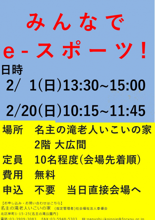 2026.02.01 ちぎり絵はがき講座開催しました 活動報告 2026.02.01 2月もみんなでe-スポーツ開催致します お知らせ 2026.02.01 2月もみんなでボッチャ開催致します お知らせ 2026.01.31 「いこいこ体操」開催いたしました。 活動報告 2026.01.30 はじめてのヨガ教室開催致しました 活動報告 2026.01.30 みんなで脳トレ講座 活動報告 2026.01.30 【当選発表】「2-3月開催はじめてのヨガ教室」抽選結果のお知らせ お知らせ 2026.01.29 1月講座ミニマフラー作り開催しました② 活動報告 2026.01.29 【当選発表】「空手ビクス」抽選結果のお知らせ お知らせ 2026.01.29 【当選発表】「お菓子ラッピングの世界」抽選結果のお知らせ お知らせ 2026.01.29 【当選発表】「2月開催歌声サロン」抽選結果のお知らせ お知らせ 2026.01.25 シニアバレエ教室開催致しました 活動報告 2026.01.25 講座「手話でおしゃべり」開催いたしました。 活動報告 2026.01.25 きらりあ健康講座申し込み開始致します お知らせ 2026.01.25 いこいこ通信2月号発行しました お知らせ 1 2 3 4 5 6 … 65