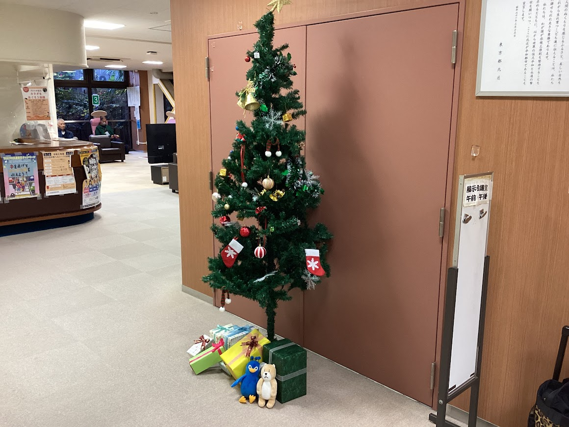 名主の滝老人いこいの家では今年も1階と地下1階にクリスマスツリーを設置しました。