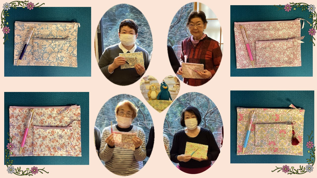 出来上がったポーチにタッセルを付けたりと皆様それぞれ素敵に完成されました。