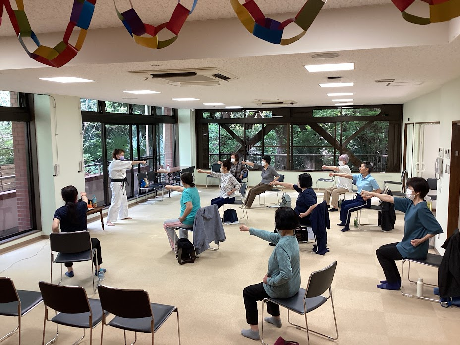 空手のポーズを紹介してくださって、ご参加いただいた皆様も力が入っておりました。