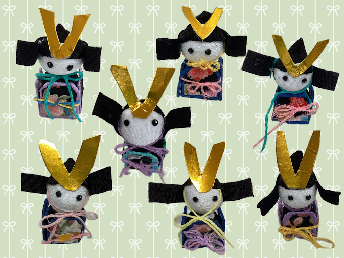 こちら↑は先月おこなった、ちりめんで五月人形の講座の作品です!