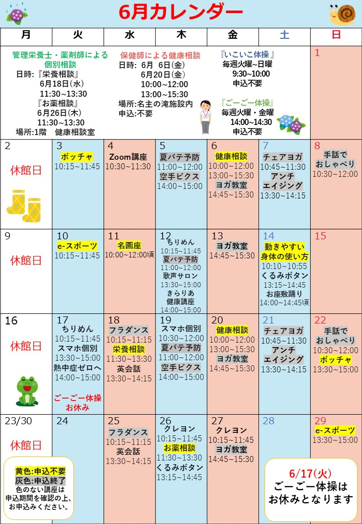 6月も様々な講座の開催を予定しております。