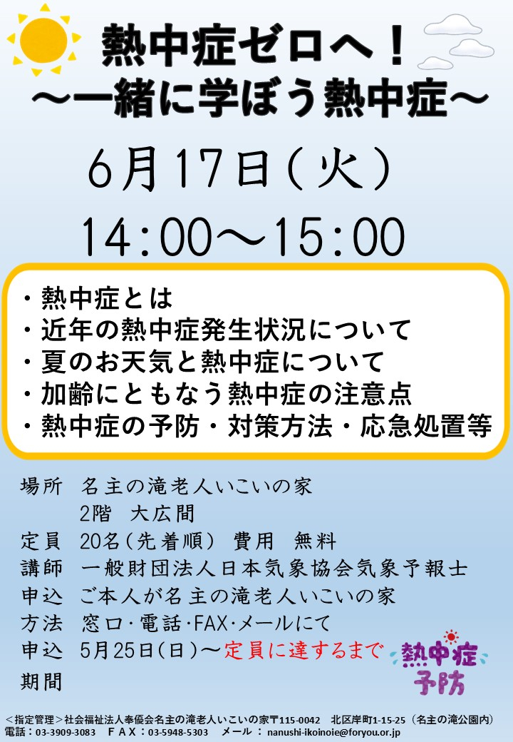 熱中症ゼロへ!~一緒に学ぼう熱中症講座を開催致します~