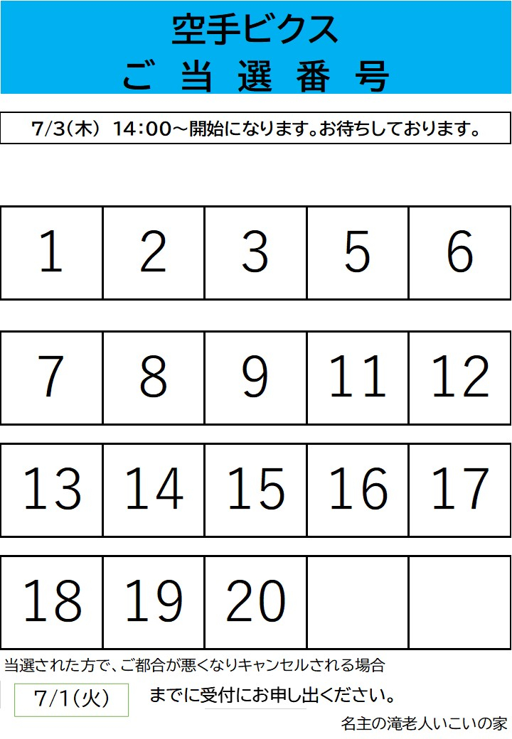 7月開催「空手ビクス」抽選結果のお知らせを致します。