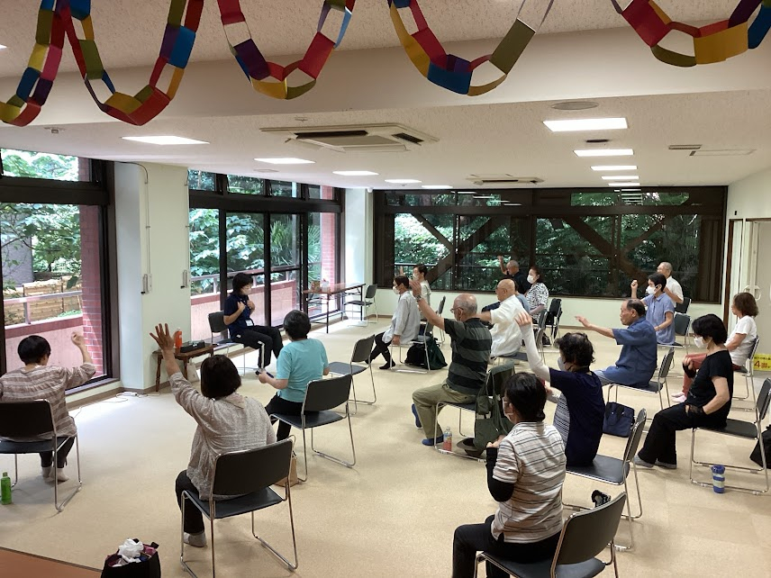 前半は下半身の筋トレ、後半はチェアロビクス、そしてクールダウン。