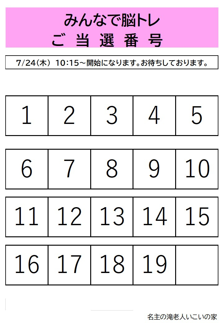 7月24日開催みんなで脳トレ講座の抽選結果を発表させていただきます。