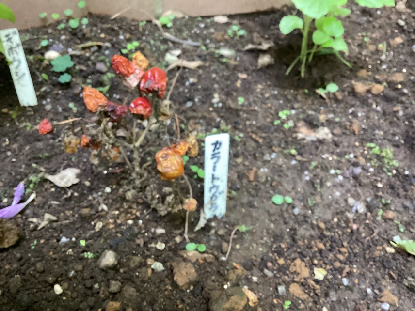 深紅の美しかったカラートウガラシは枯れてしまいました。残念。