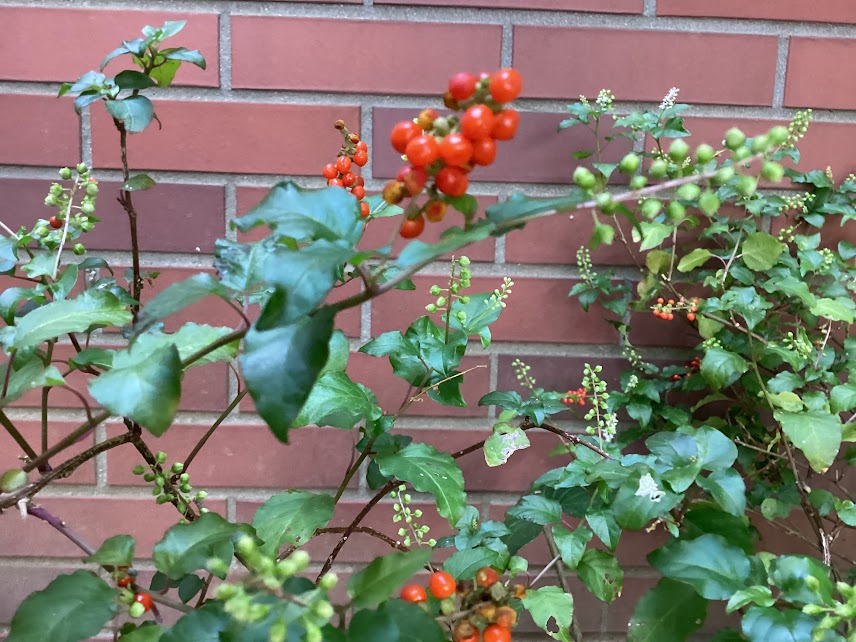 その代わりに、ソヨゴが赤い小さな実を実らせています。