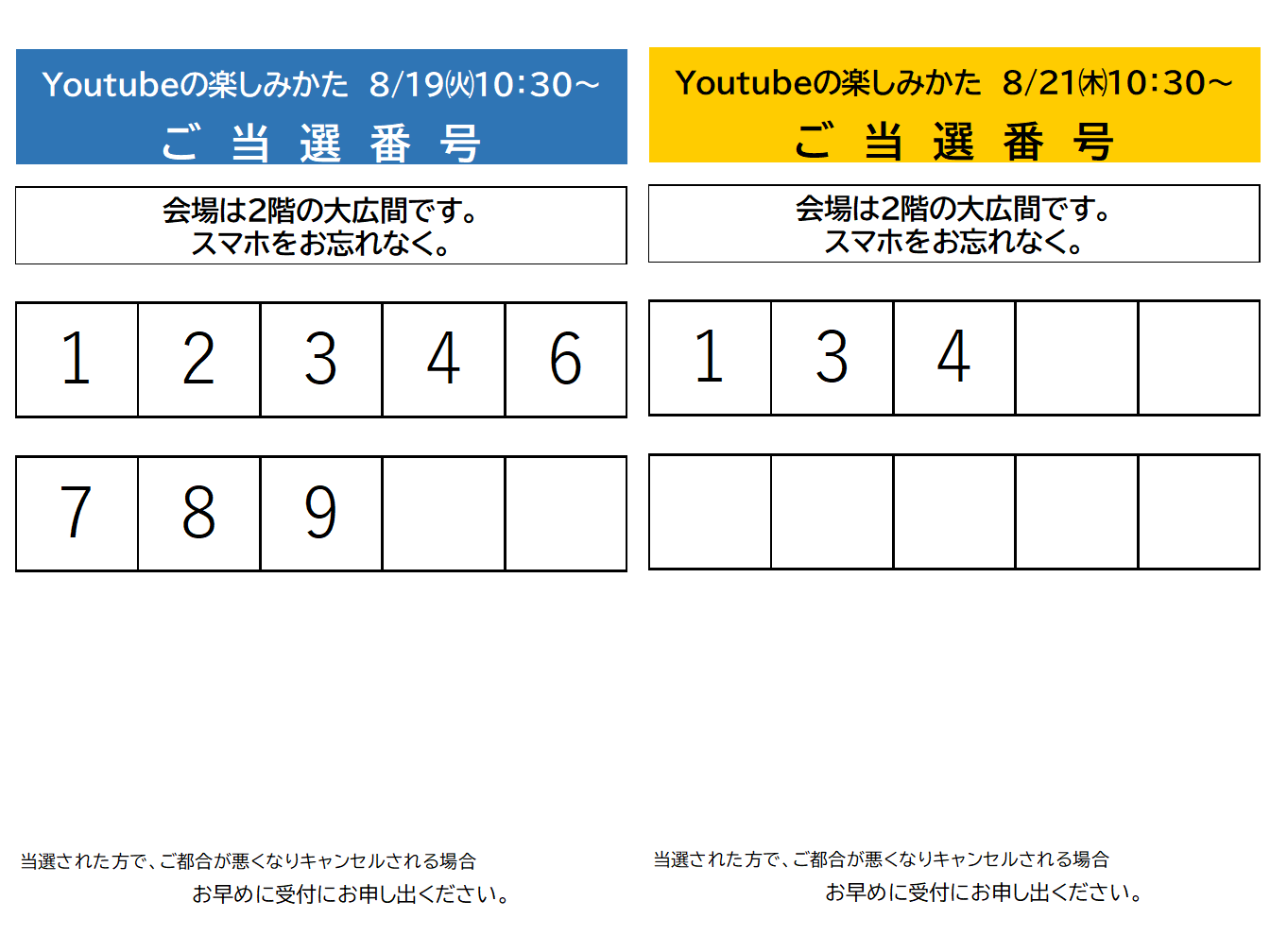 8月スマホ交流会「YouTubeの楽しみかた」抽選結果のおしらせ
