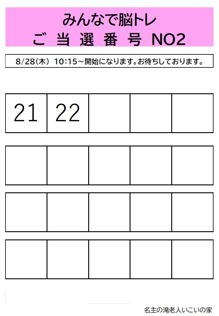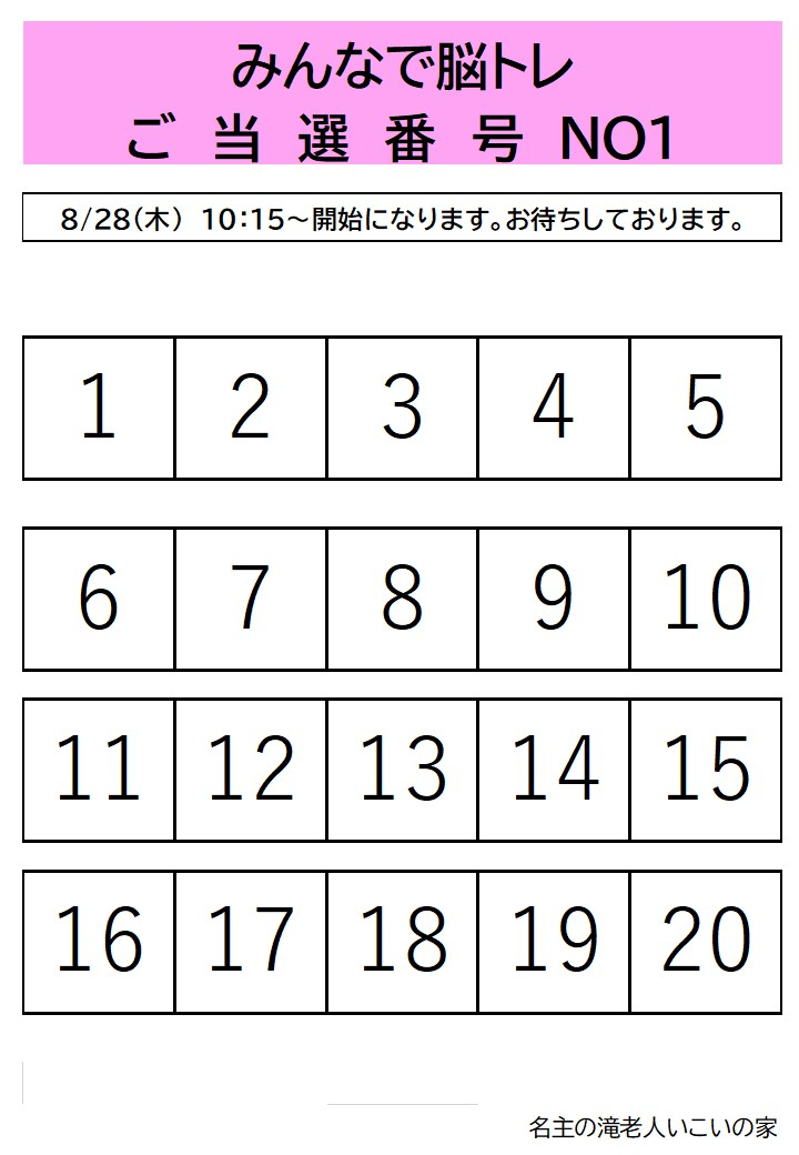 8月開催みんなで脳トレ講座の抽選結果を発表させていただきます。