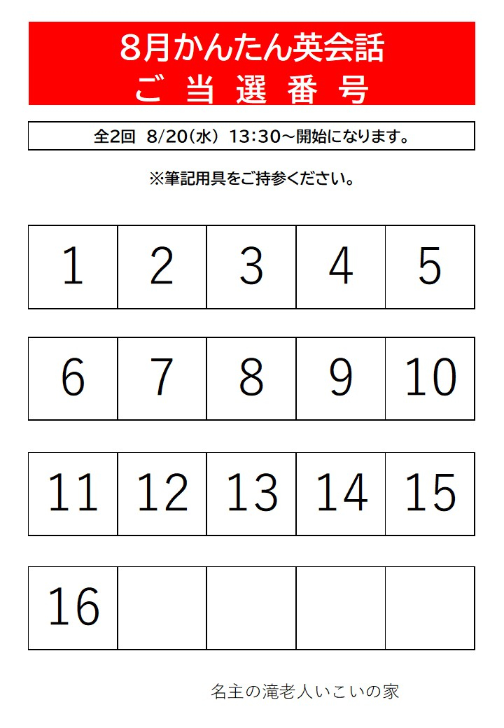 「かんたん英会話」講座の抽選結果を発表させていただきます。