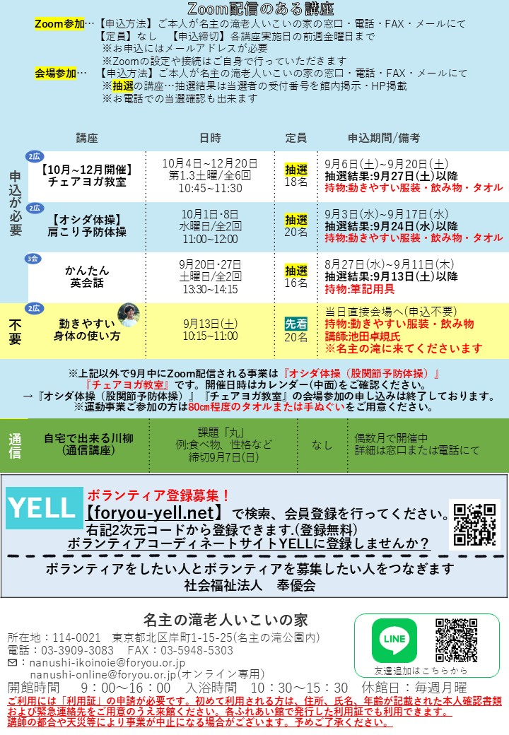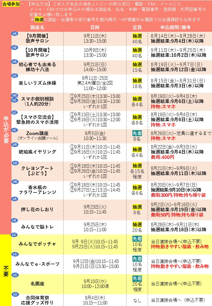 9月も様々な講座の開催を予定しております。