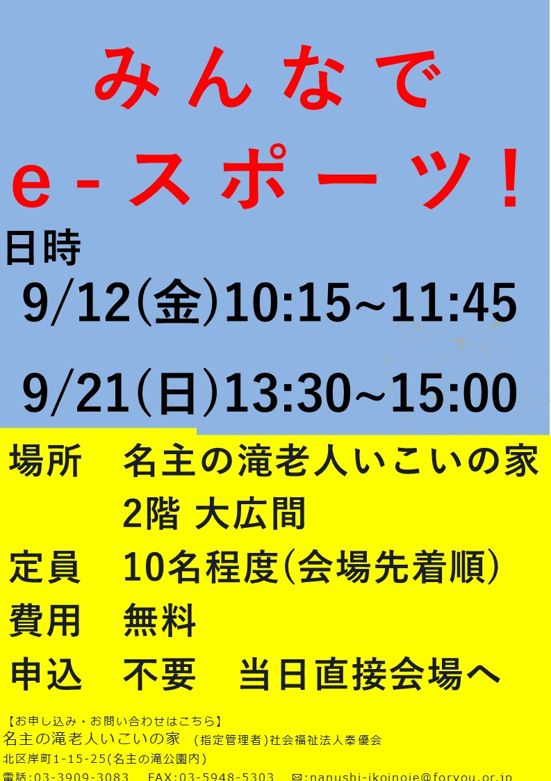 9月もみんなでe-スポーツ開催致します