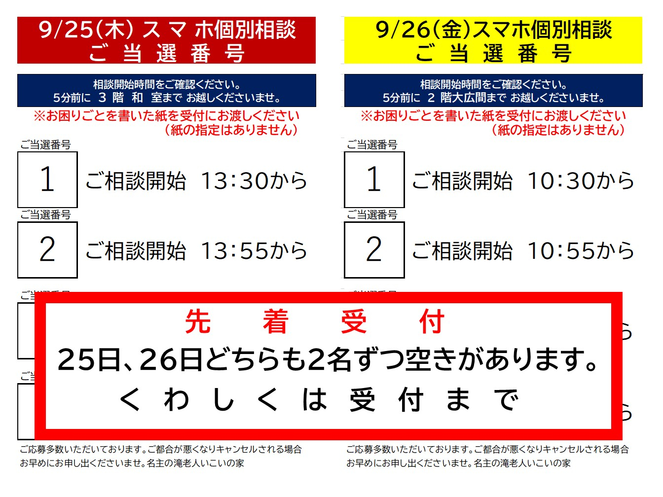 9月のスマホ個別相談の抽選結果を発表させていただきます。