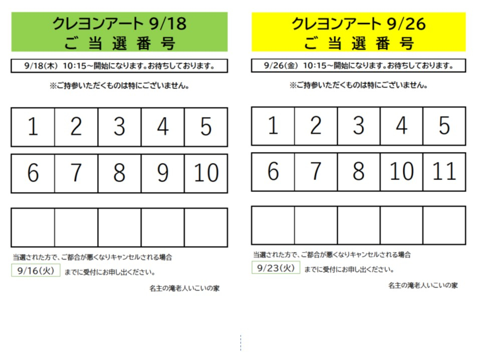 【当選発表】「9月開催クレヨンアート」抽選結果のお知らせ