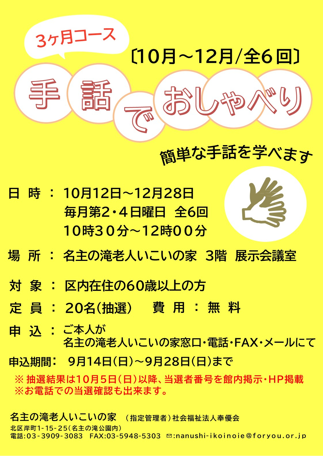 「手話でおしゃべり」10月からのコース、募集が始まります。