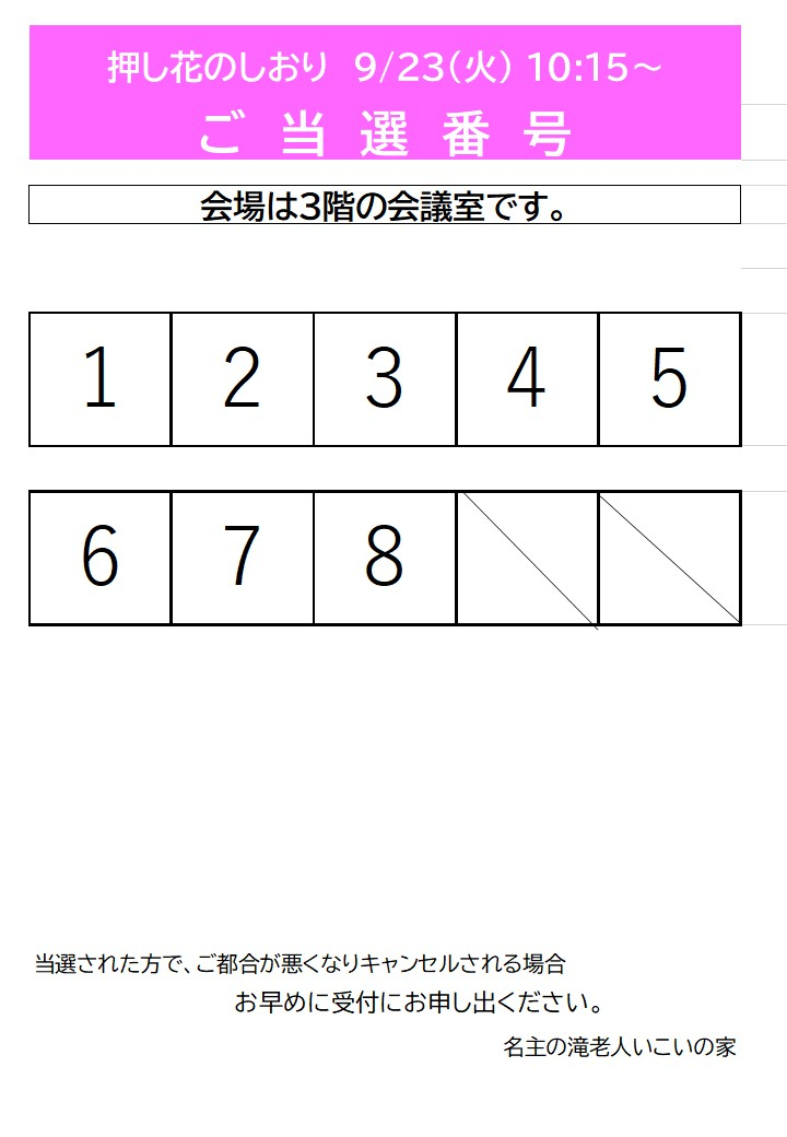 9月開催「押し花のしおり」の抽選結果をお知らせいたします。