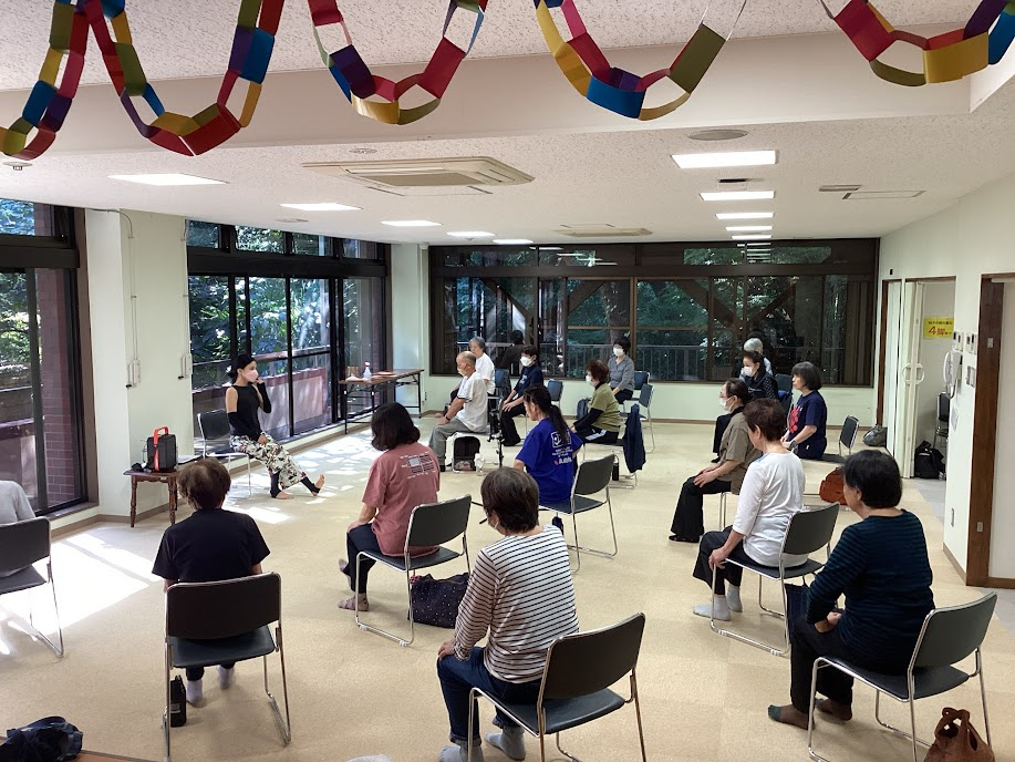 チェアヨガ教室では呼吸法を学び集中力を高めていきます。