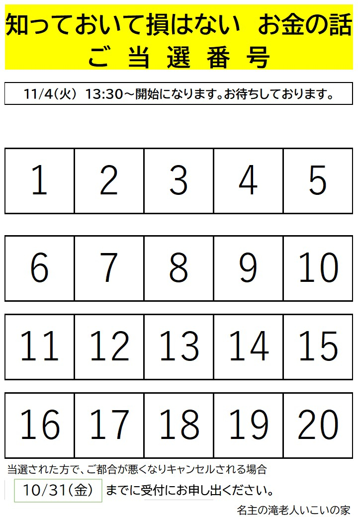 「知っておいて損はない お金の話」抽選結果を発表させていただきます。