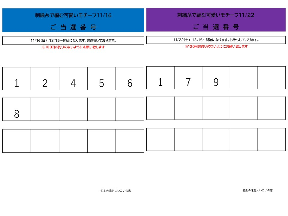 11月開催の「刺繡糸で編む可愛いモチーフ」抽選結果を発表させていただきます。