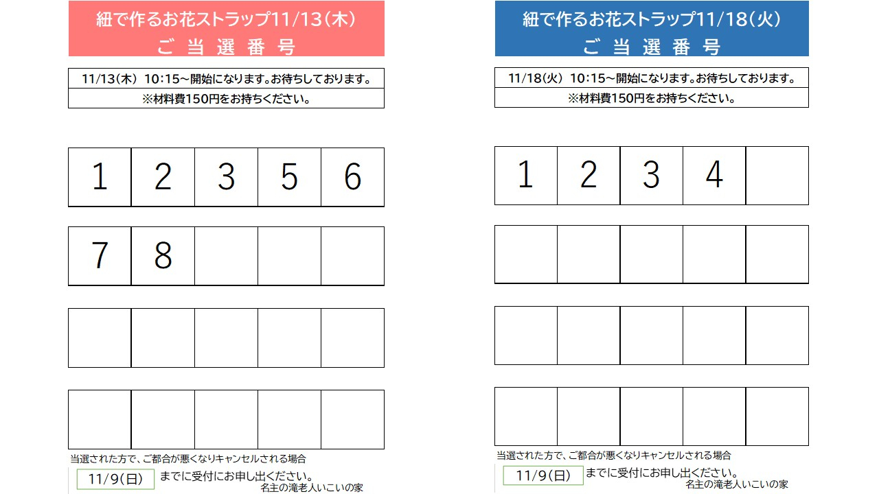 「紐で作るお花ストラップ」の抽選結果をお知らせいたします。