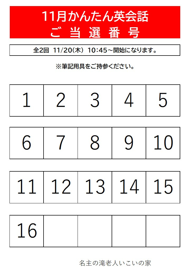 【当選発表】「11月かんたん英会話」抽選結果のお知らせ