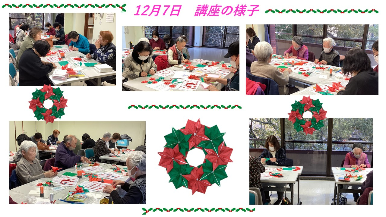 12月 折紙で作るポインセチアのリース講座の様子です。