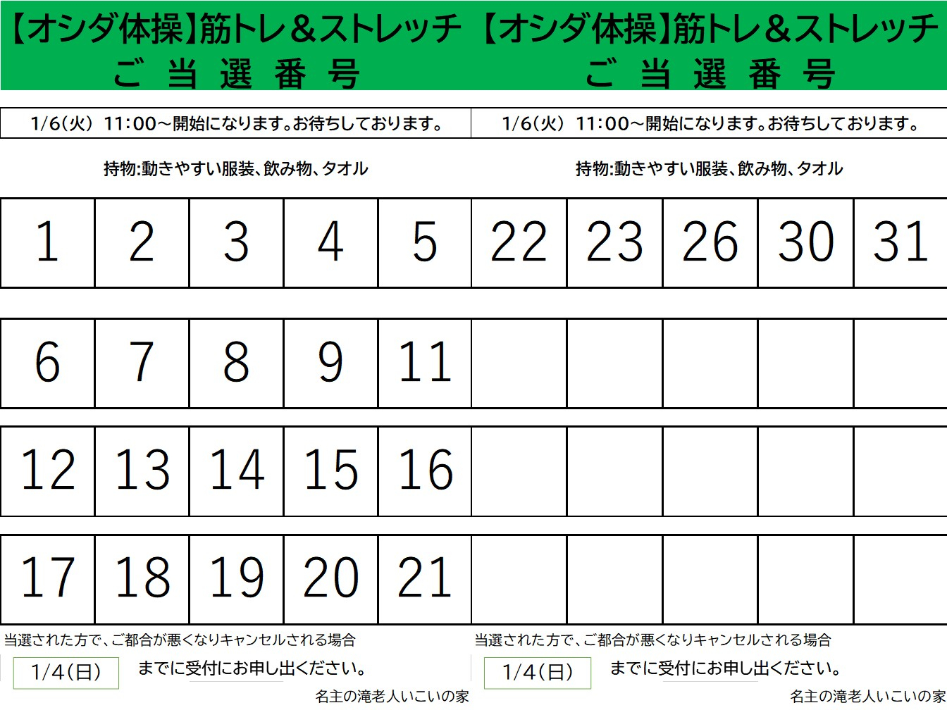 【当選発表】(オシダ体操)筋トレ&ストレッチ抽選結果のお知らせ