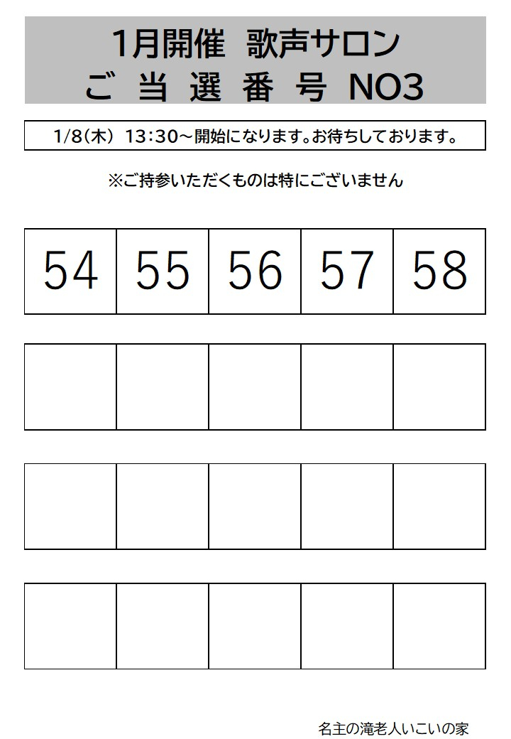 1月開催歌声サロンの抽選結果を発表させていただきます。