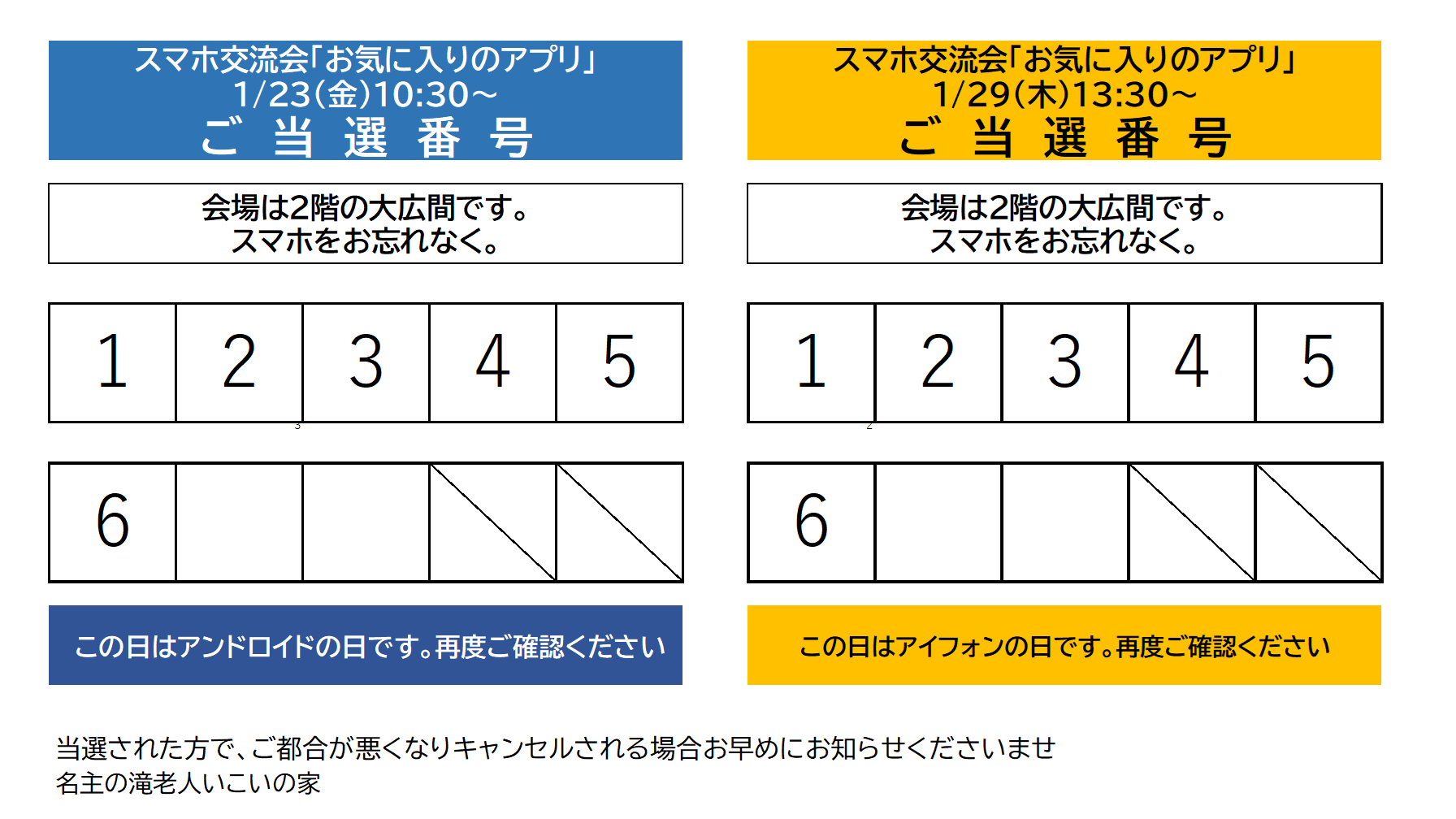 【当選発表】1月スマホ交流会「あなたのお気に入りのアプリを教えてください」抽選結果のおしらせ