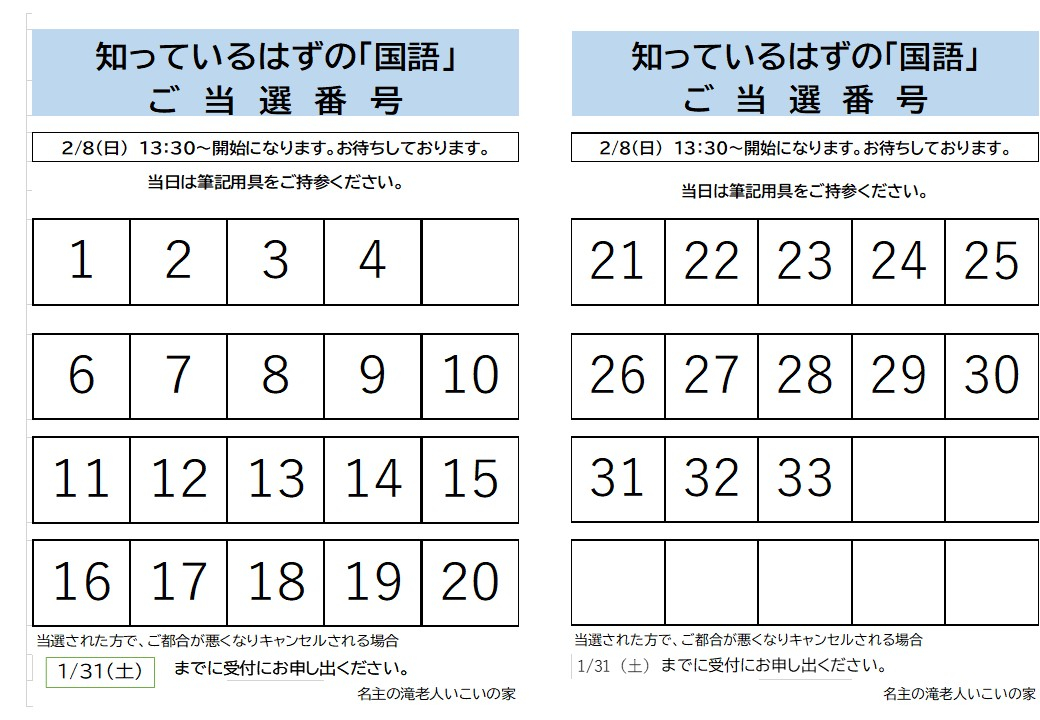 2月8日、22日開催「知っているはずの『国語』」抽選結果を発表させていただきます。