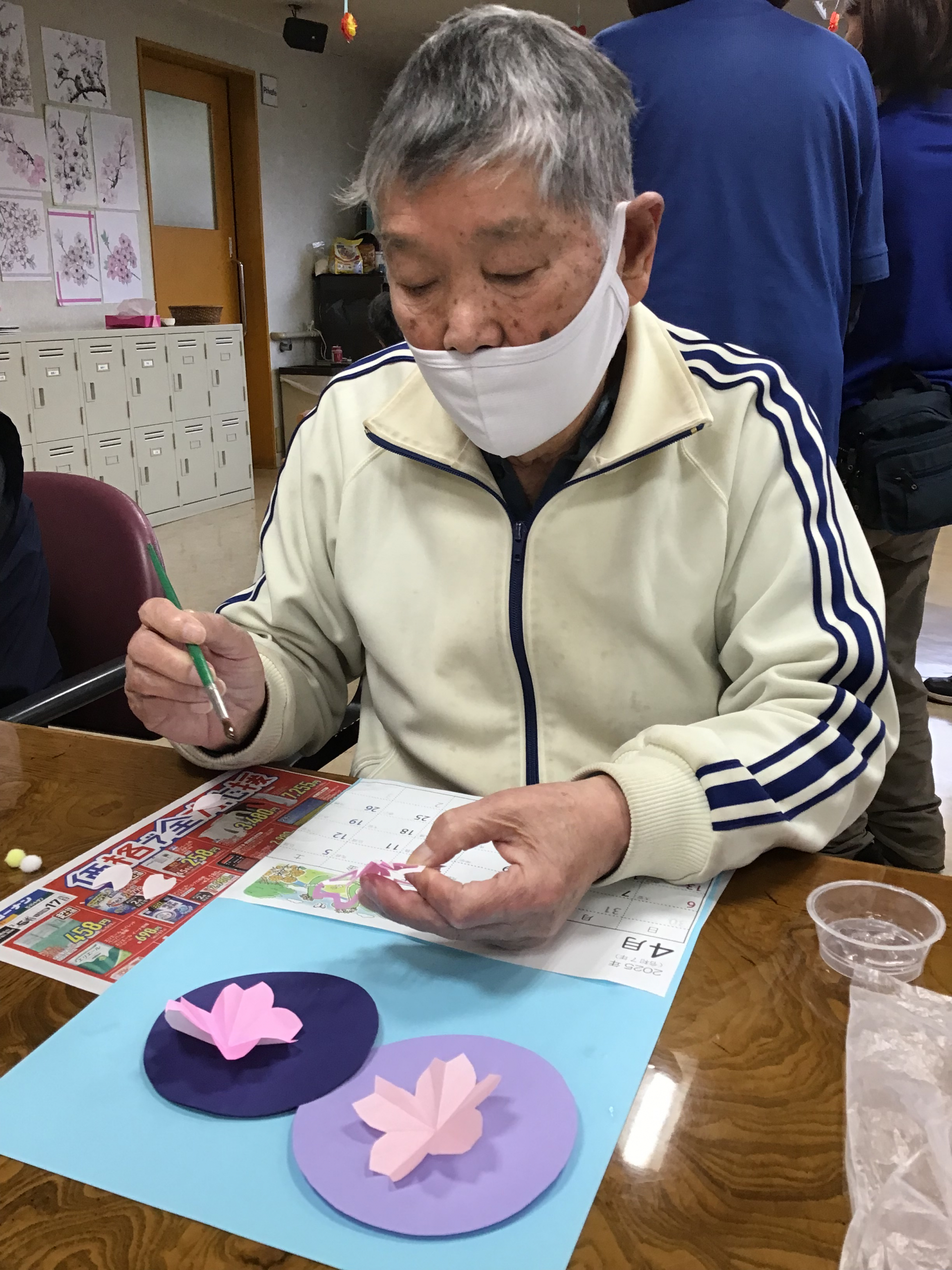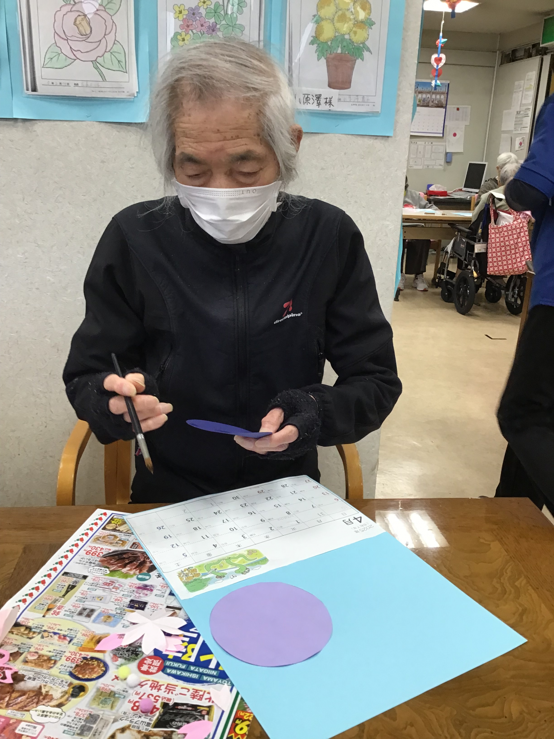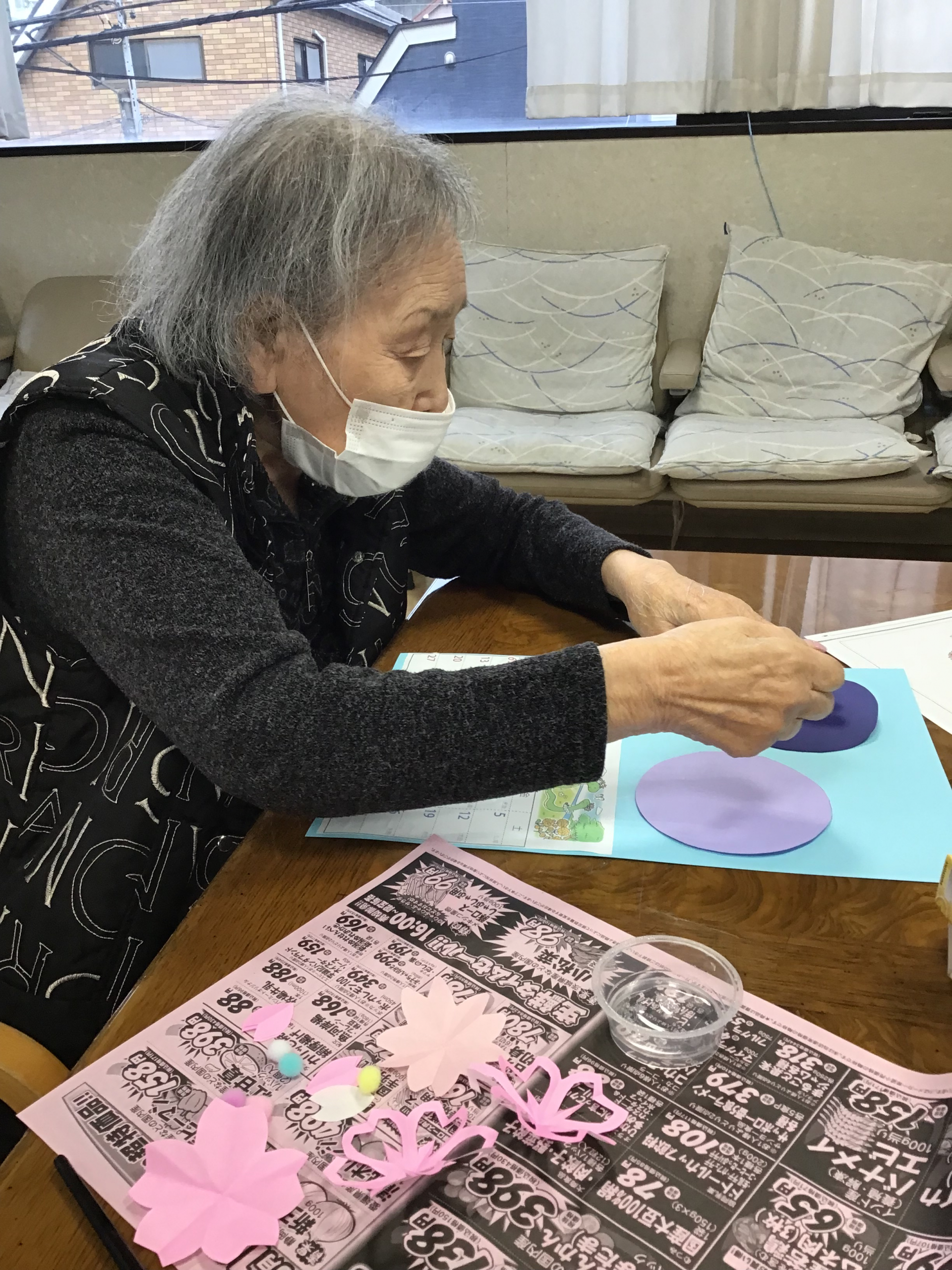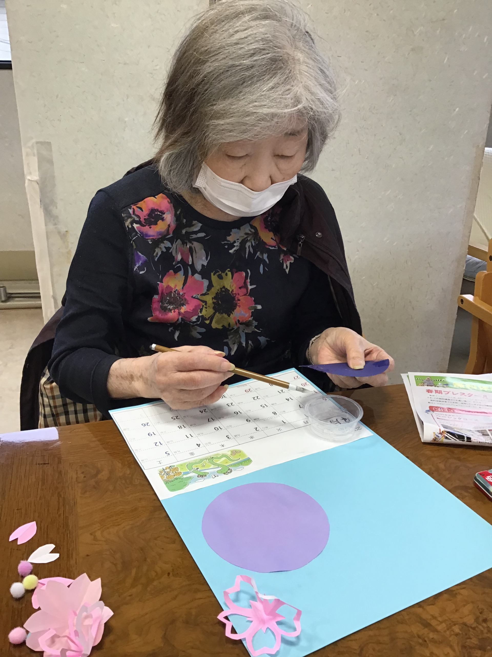 ノリで貼り付けをして春らしい作品が完成しました♬