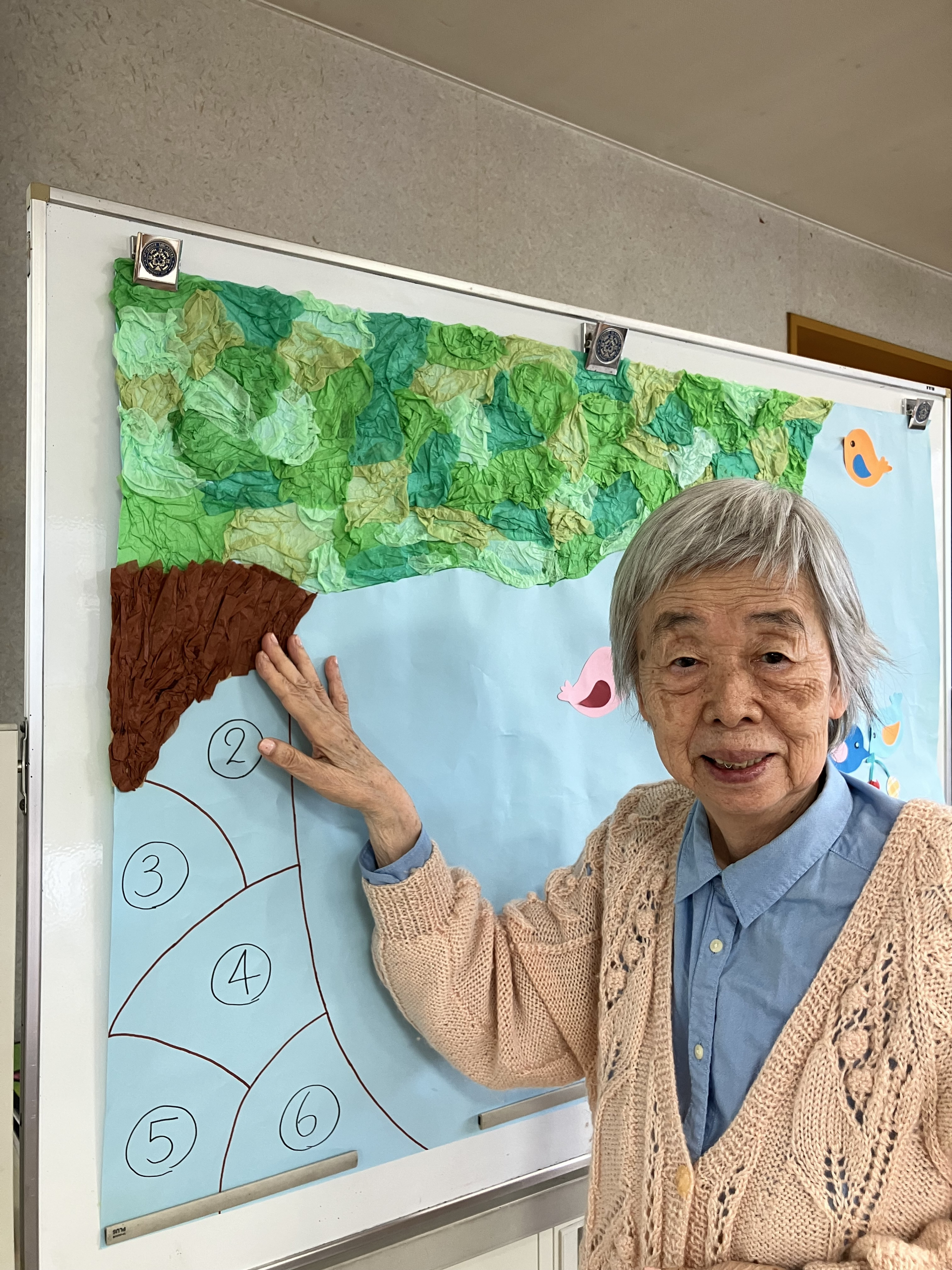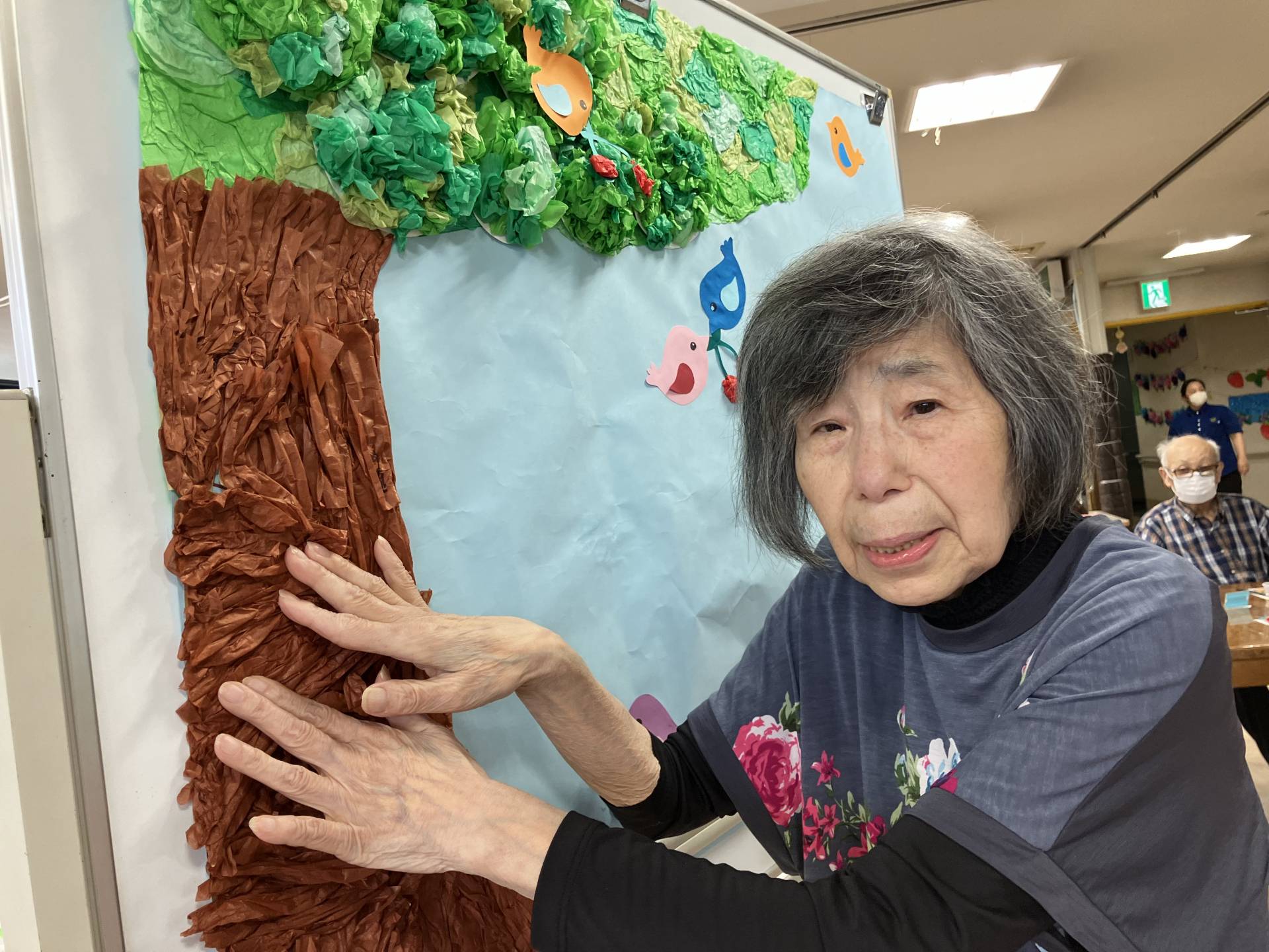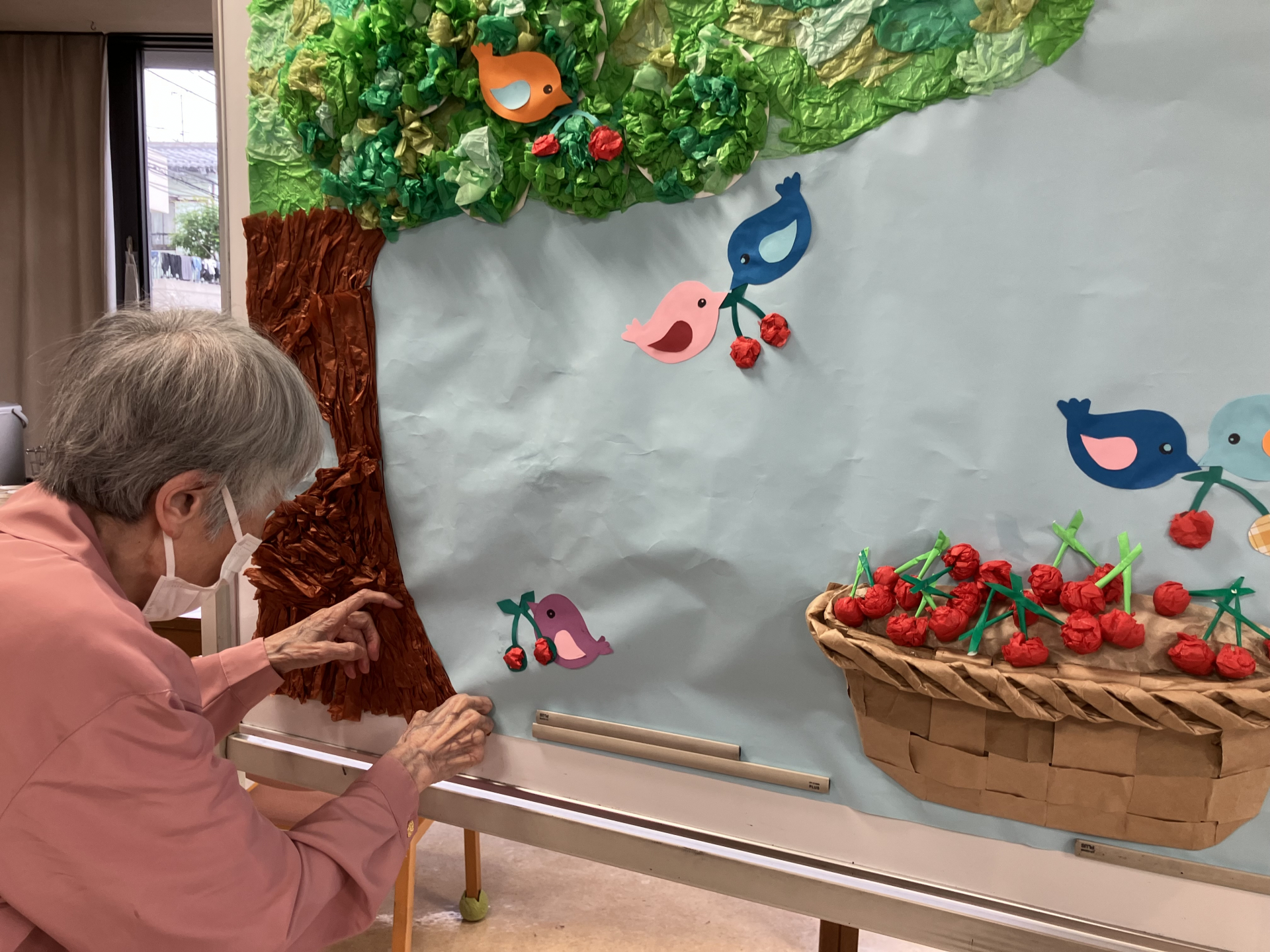 かわいいサクランボを折り紙などで作成し画用紙に貼りました♬