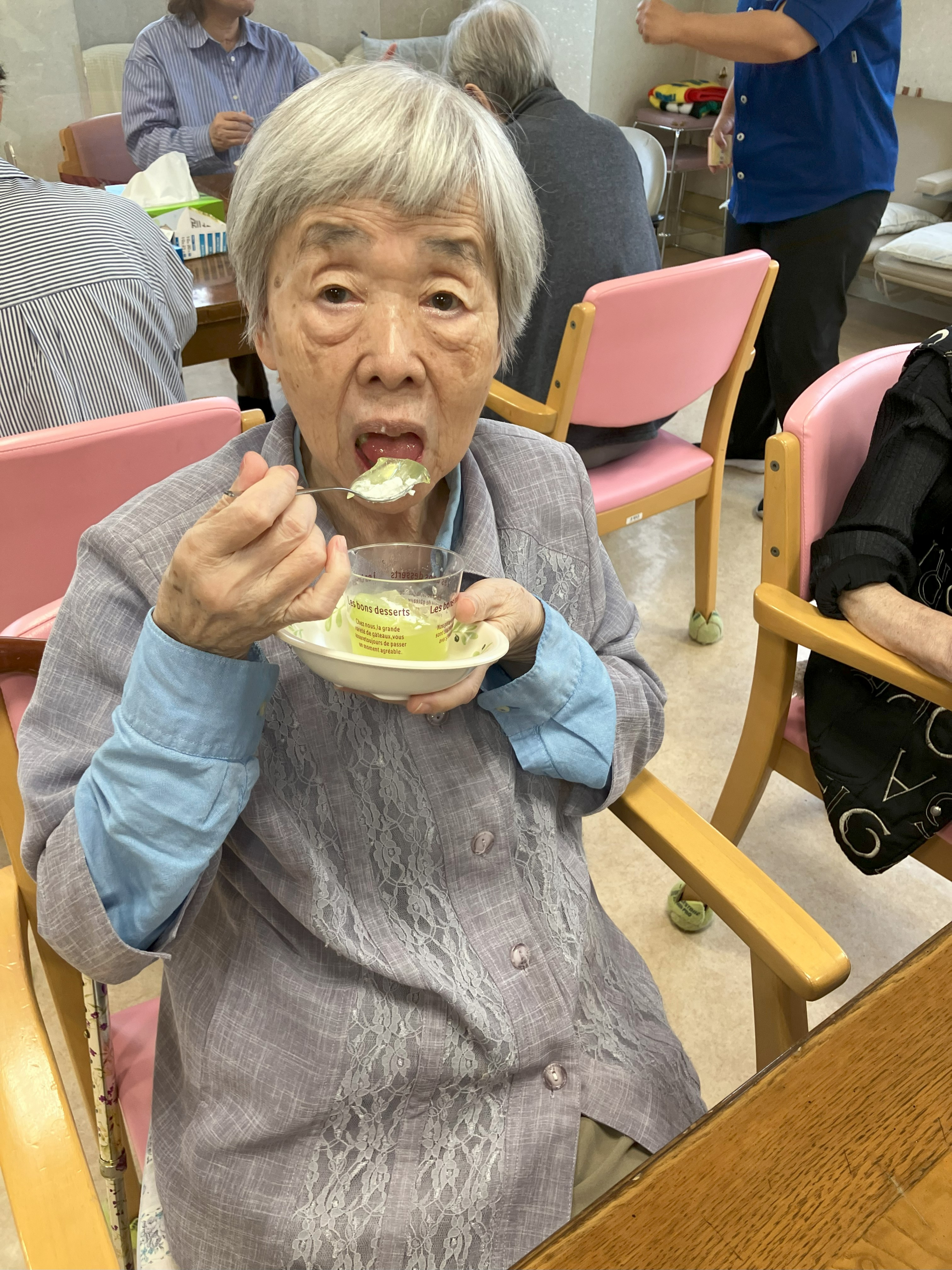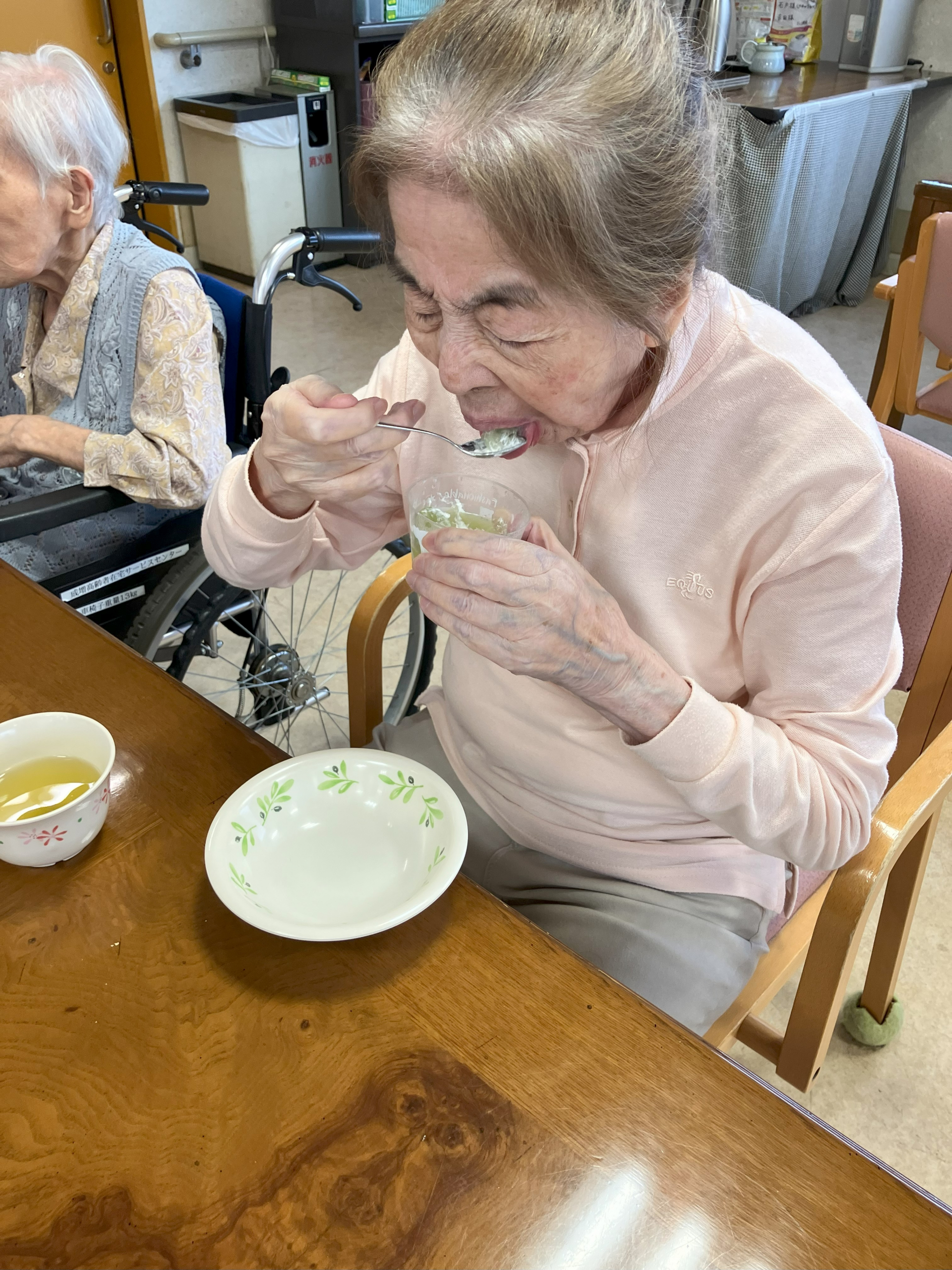 厨房の方のお気遣いでシャインマスカットを寄付してくださり皆さんで召し上がりました♬