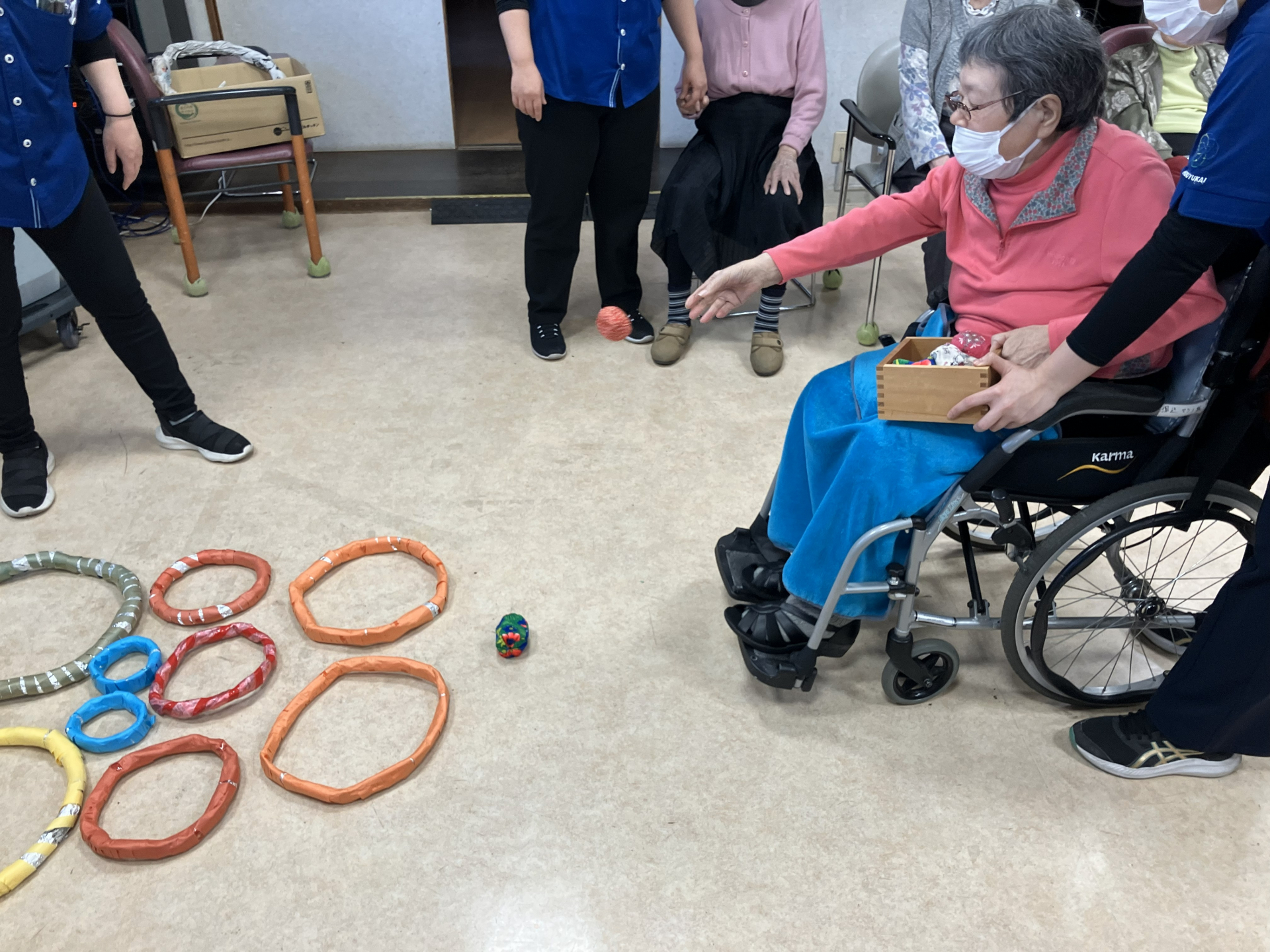 2026.01.22 活動報告 ☆成増デイ 輪っかにポン!☆ Tweet シェアする 皆さん、こんにちは。 成増高齢者在宅サービスセンターです。 昨日は「輪っかにポン!」ゲームでした! 見事に輪に玉を入れておりました。 ご覧いただきありがとうございます。 前の記事 2026.01.26 活動報告 ☆成増デイ ミニ運動会☆ 次の記事 2026.01.21 活動報告 ☆成増デイ 介護美容☆ 一覧へ戻る