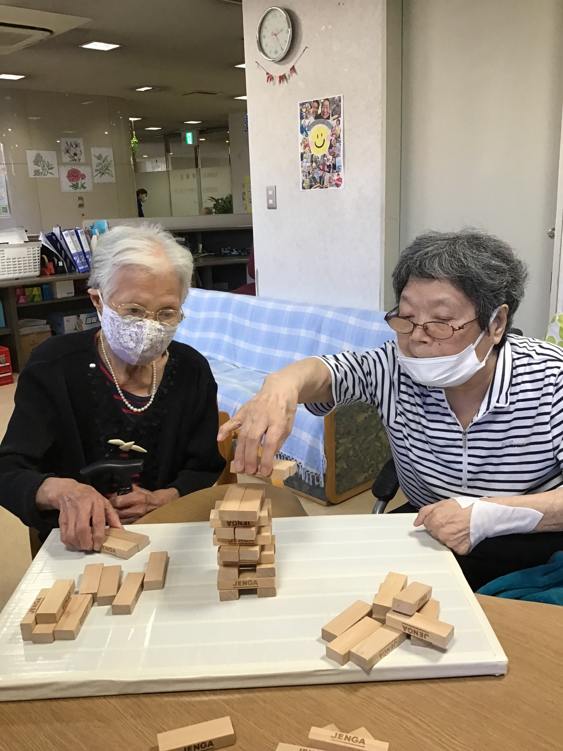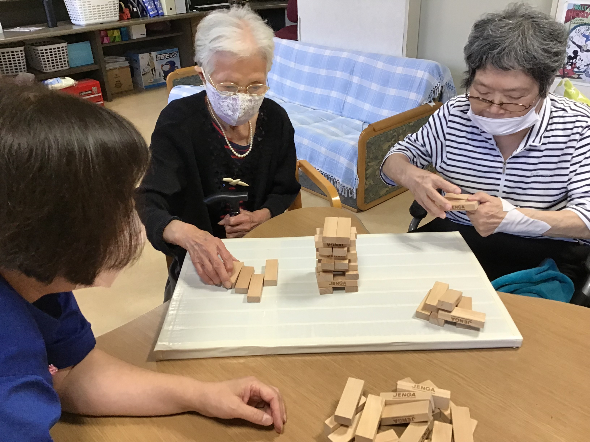 ジェンガのピースを抜いたり、積んだりして、手の体操も兼ねて、楽しかったです!
