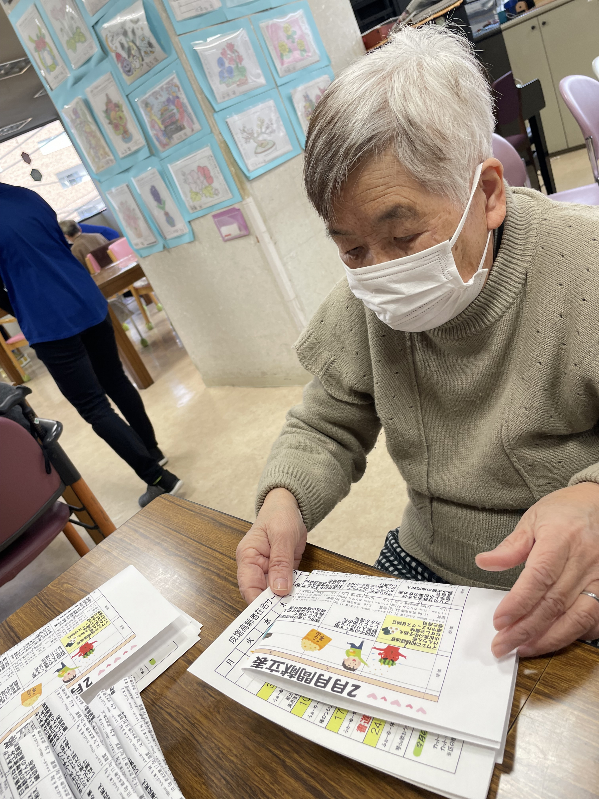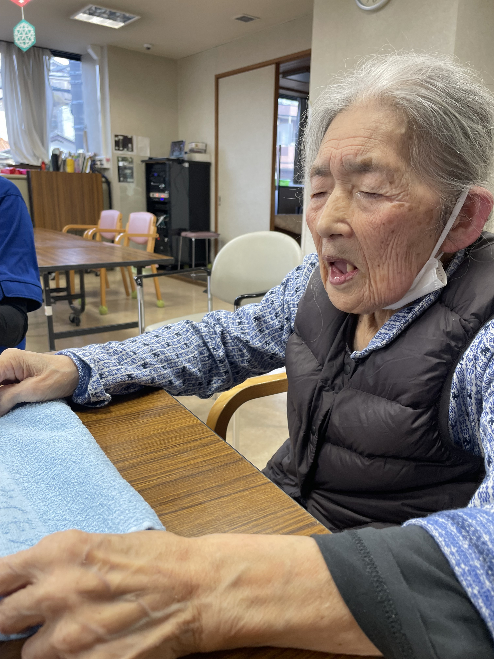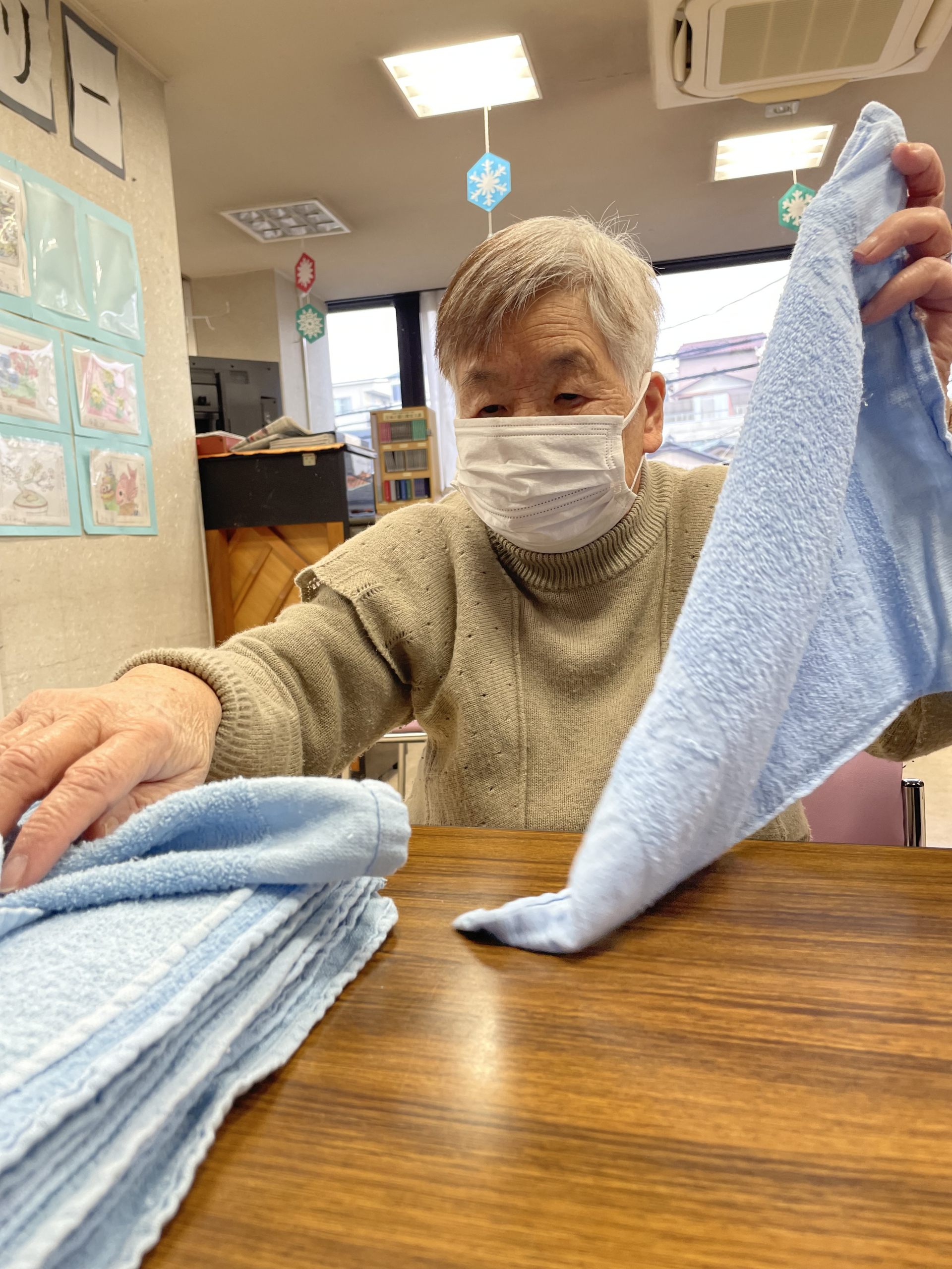 午後はお知らせの折り込みとタオルたたみを頑張っています!