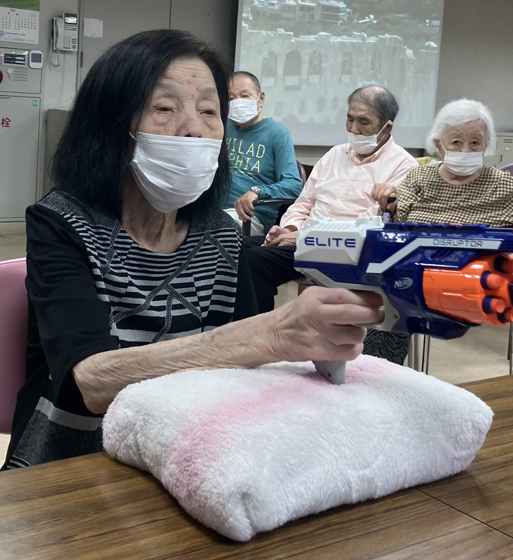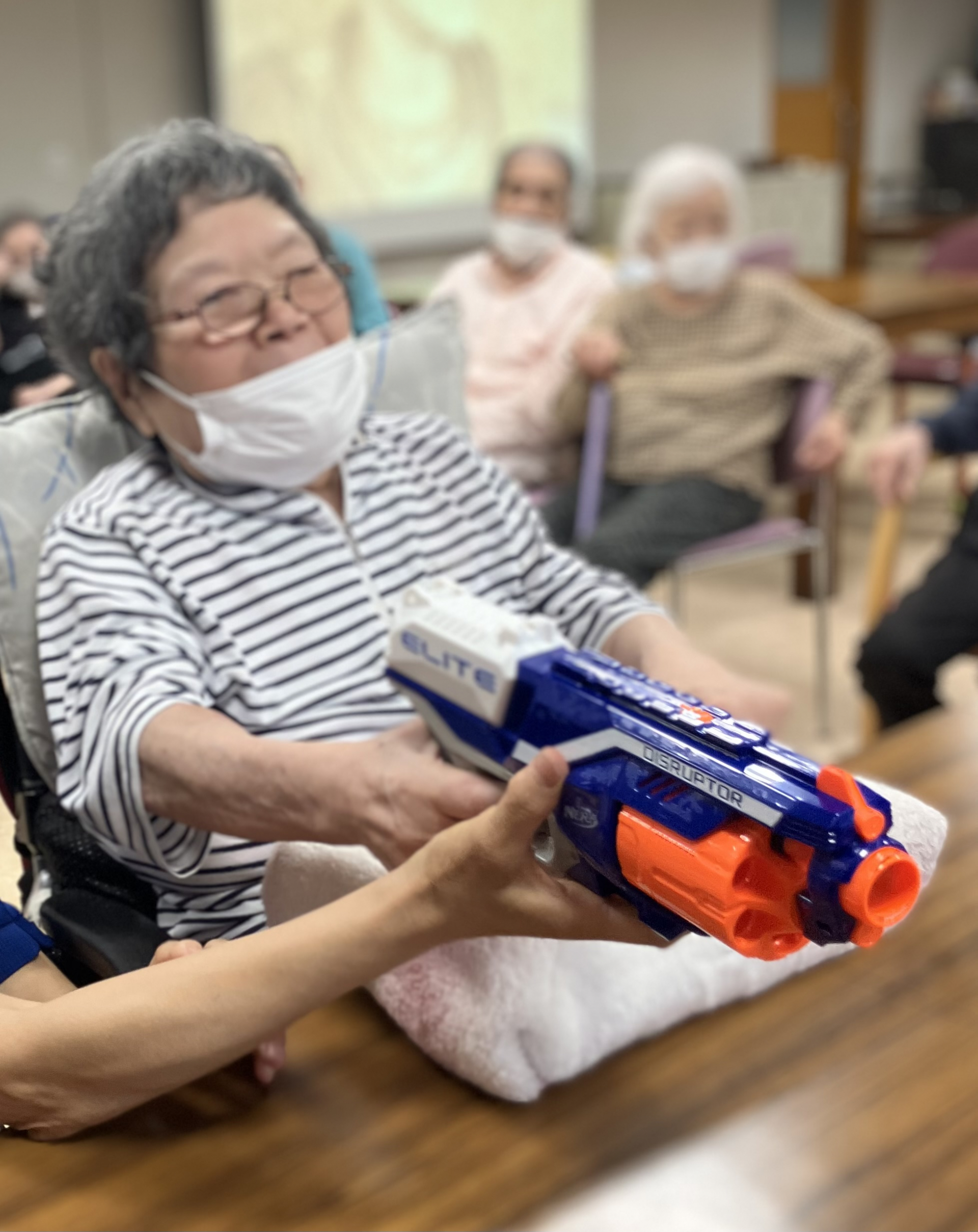 先日、午後のレクリエーションが射的大会でした!