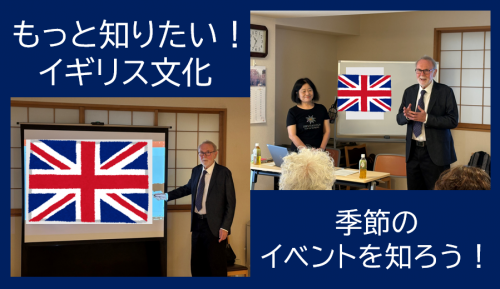 2025.07.24 もっと知りたい!イギリス文化~訪れてほしいイングランドの美しい場所~ 活動報告 #イギリス #異文化を学ぼう! 2025.06.28 もっと知りたい!イギリス文化~イギリスの言語・英語と文学~ 活動報告 #イギリス #異文化を学ぼう! 2025.05.28 もっと知りたいイギリス文化~ファッションと王室の華 活動報告 #イギリス #異文化を学ぼう! 2025.04.23 もっと知りたい!イギリス文化~季節のイベントを知ろう!~ 活動報告 #イギリス #外国文化 #イギリス在住の方が生情報をお届けします! 2025.03.12 もっと知りたい!イギリス文化~イギリスの社会制度と教育文化~ 活動報告 #イギリス #異文化を学ぼう! 2025.02.12 もっと知りたい!イギリス文化~食文化とお茶の楽しみ~ 活動報告 #異文化を学ぼう! #イギリス