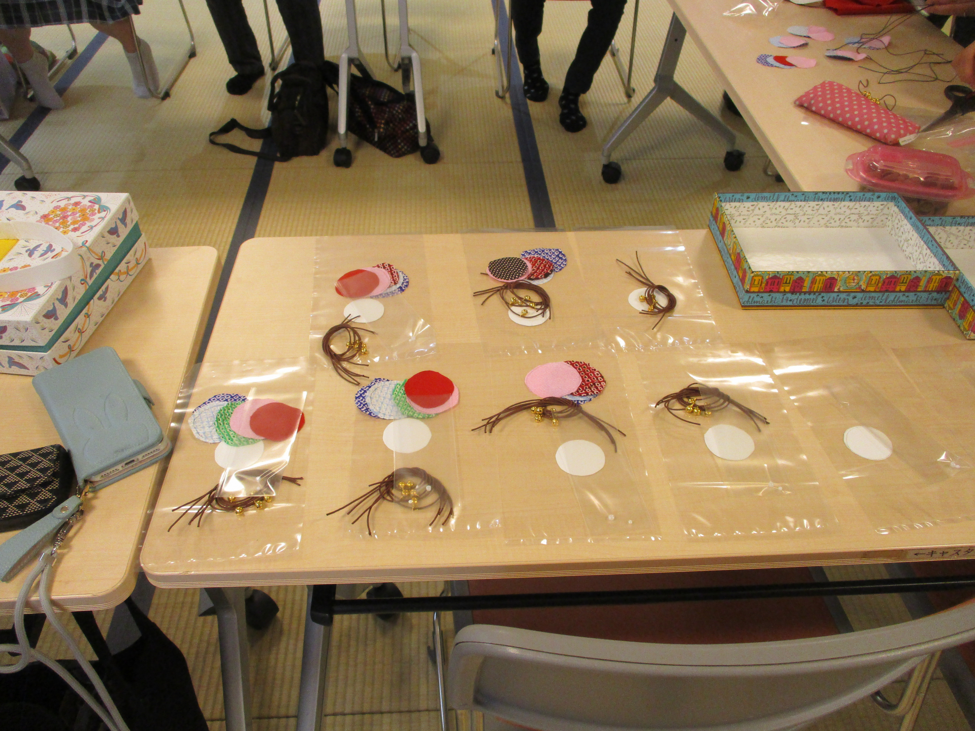 ストラップに使用する材料を丁寧に切り、袋づめをしました。