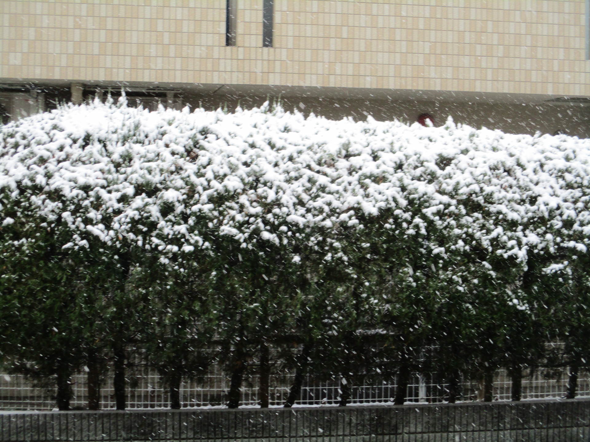 シニア館前の通りの植木にも沢山の雪が積もっています。